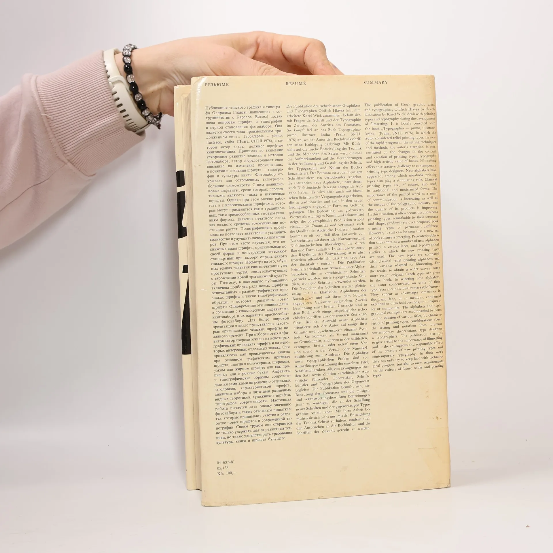 Kniha navazuje na publikaci Typographia – písmo, ilustrace, kniha, liší se však od ní jak náplní, tak vnitřní koncepcí. Vychází ze zhodnocení písem, ilustrací a knih klasické éry knihtisku, aby mohla analyzovat současnou situaci písma a tisku ve vztahu ke knize dneška a zítřka předevšímz hlediska změn vyvolaných nahrazováním knihtisku fotosazbou. Jádrem knihy jsou ukázky písem, konfrontující klasické latinkové abecedy s novými abecedami, které vznikly pro potřebu fotosazby. Použití písem je ukázáno v návrzích typografického řešení grafických úprav knih a tisků, včetně ilustrací v různých typech publikací, s důrazem na volbu a rozvržení písma a ilustrace. Textová část pojednává též o problematice vztahu fotosazby k písmu, knize a ilustraci a o grafické úpravě publikací různého charakteru. Určeno čtenářům se SŠ i VŠ vzděláním z oboru polygrafie, typografie, užité grafiky, výtvarného umění, knižní kultury a pro pracovníky nakladatelství a tiskáren.