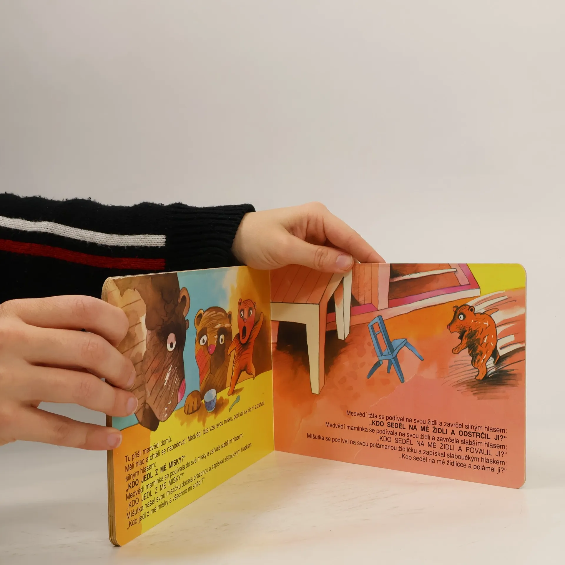 Klasická pohádka o holčičce, která zabloudila v lese a dostala se do chaloupky tří medvědů. Zároveň se dětem vysvětlují základní pojmy velikosti, a to u židle, misky a postele.
