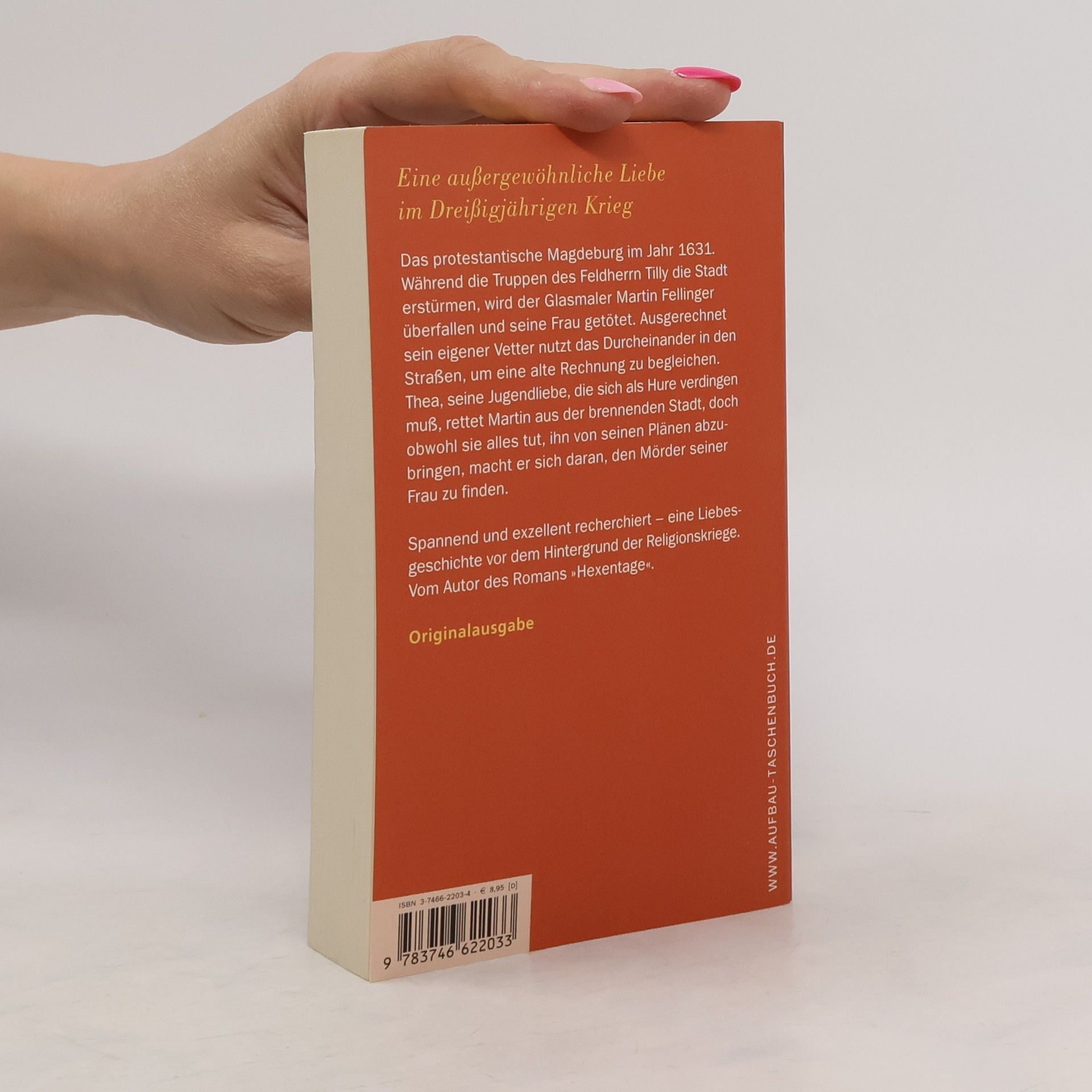 Eine außergewöhnliche Liebe im Dreißigjährigen Krieg Das protestantische Magdeburg im Jahr 1631. Während die Truppen des Feldherrn Tilly die Stadt erstürmen, wird der Glasmaler Martin Fellinger überfallen und seine Frau getötet. Ausgerechnet sein eigener Vetter nutzt das Durcheinander in den Straßen, um eine alte Rechnung zu begleichen. Thea, seine Jugendliebe, die sich als Hure verdingen muß, rettet Martin aus der brennenden Stadt, doch obwohl sie alles tut, ihn von seinen Plänen abzubringen, macht er sich daran, den Mörder seiner Frau zu finden. Spannend und exzellent recherchiert - eine Liebesgeschichte vor dem Hintergrund der Religionskriege. Vom Autor des Romans „Hexentage“.