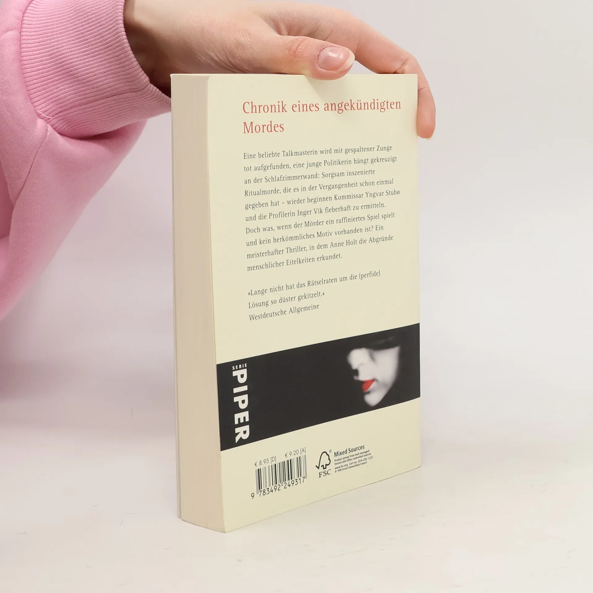 Eine beliebte Talkmasterin wird mit gespaltener Zunge tot aufgefunden, eine junge Politikerin hängt gekreuzigt an der Schlafzimmerwand: Sorgsam inszenierte Ritualmorde, die es in der Vergangenheit schon einmal gegeben hat – wieder beginnen Kommissar Yngvar Stubø und die Profilerin Inger Vik fieberhaft zu ermitteln. Doch was, wenn der Mörder ein raffiniertes Spiel spielt und kein herkömmliches Motiv vorhanden ist? Ein meisterhafter Thriller, in dem Anne Holt die Abgründe menschlicher Eitelkeiten erkundet.