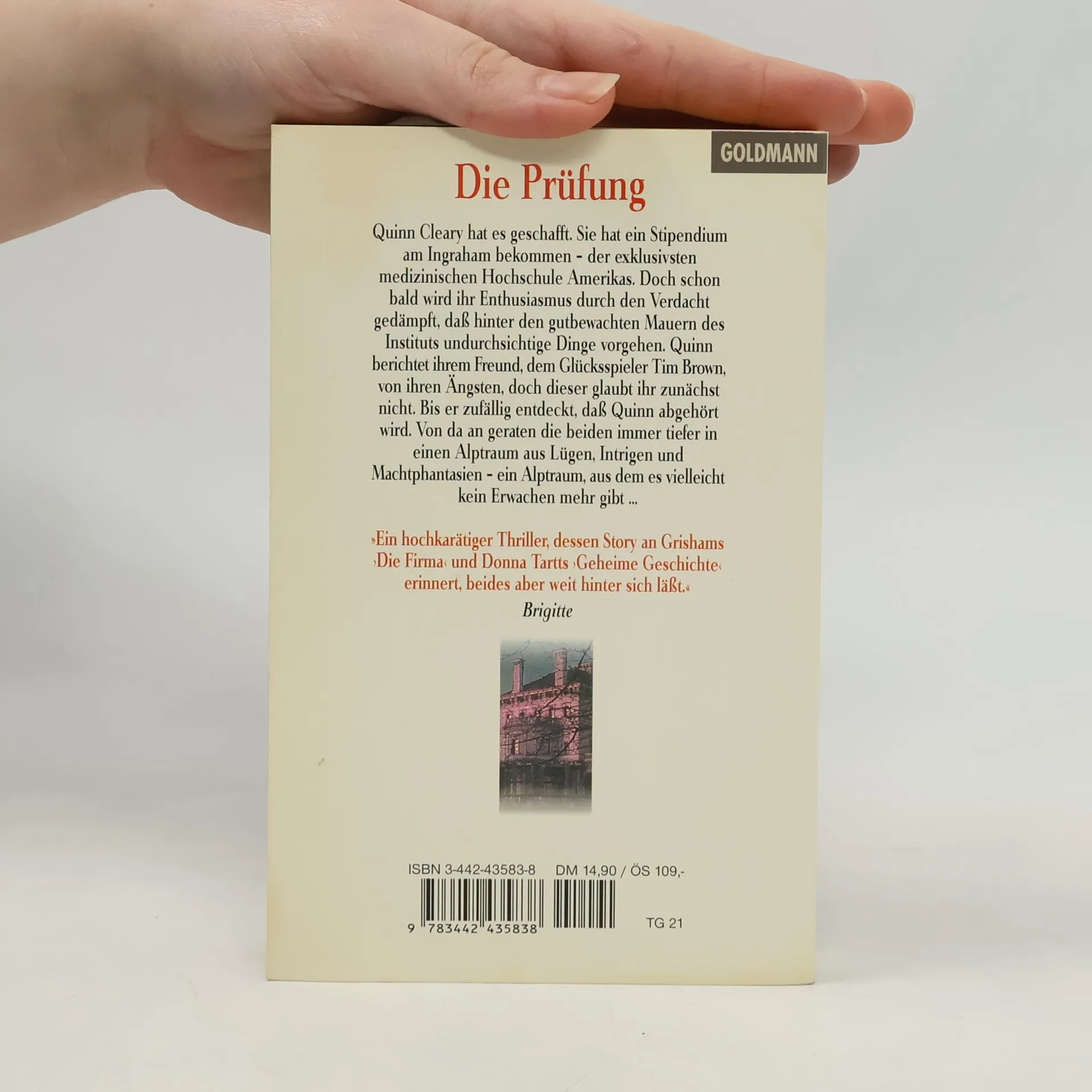 Seit sie ihr Stipendium am Ingraham, der exklusivsten medizinischen Hochschule Amerikas, hat, kann Quinn Cleary sagen: Sie hat es geschafft. Doch schon bald wird ihr Enthusiasmus von dem Verdacht gedämpft, daß hinter den gutbewachten Mauern des Instituts undurchsichtige Dinge vorgehen. Quinn berichtet ihrem Freund, dem Glücksspieler Tim Brown, von ihren Ängsten, doch dieser glaubt ihr zunächst nicht. Bis er zufällig entdeckt, daß Quinn abgehört wird. Von da an geraten die beiden immer tiefer in einen Alptraum aus Lügen, Intrigen und Machtphantasien - ein Alptraum, aus dem es vielleicht kein Erwachen mehr gibt.