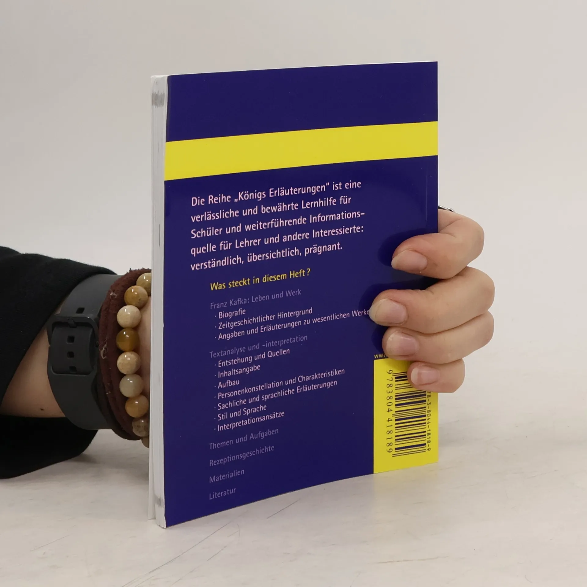 Königs Erläuterung zu Franz Die Verwandlung - Textanalyse und Interpretation mit ausführlicher Inhaltsangabe und Abituraufgaben.In einem Band bieten dir die neuen Königs Erläuterungen alles, was du zur Vorbereitung auf Referat, Klausur, Abitur oder Matura benötigst.Das spart dir lästiges Recherchieren und kostet weniger Zeit zur Vorbereitung.Alle wichtigen Infos zur Interpretation.- von der ausführlichen Inhaltsangabe über Aufbau, Personenkonstellation, Stil und Sprache bis zu Interpretationsansätzen- plus 4 Abituraufgaben mit Musterlösungen und 2 weitere zum kostenlosen Download. sowohl kurz als auch ausführlich.- Die Schnellübersicht fasst alle wesentlichen Infos zu Werk und Autor und Analyse zusammen.- Die Kapitelzusammenfassungen zeigen dir das Wichtigste eines Kapitels im Überblick - ideal auch zum Wiederholen.. und klar strukturiert.- Ein zweifarbiges Layout hilft dir Wesentliches einfacher und schneller zu erfassen.- Die Randspalte mit Schlüsselbegriffen ermöglichen dir eine bessere Orientierung.- Klar strukturierte Schaubilder verdeutlichen dir wichtige Sachverhalte auf einen Blick.. mit vielen zusätzlichen Infos zum kostenlosen Download.
