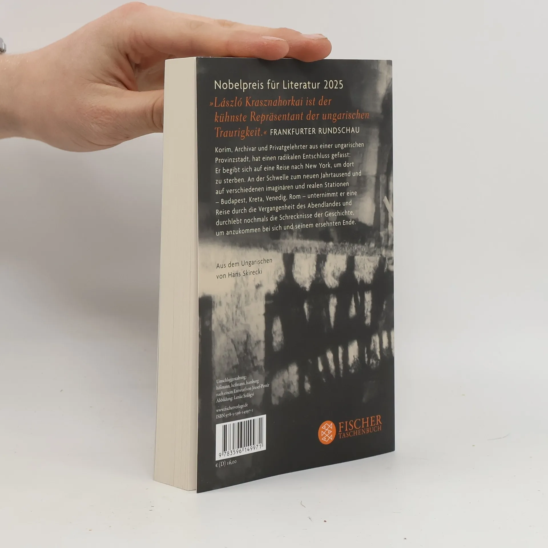 Korim, Archivar und Privatgelehrter aus einer ungarischen Provinzstadt, hat einen radikalen Entschluss gefasst: Er begibt sich auf eine Reise in die USA, genauer nach New York City, um dort zu sterben. An der Schwelle zum neuen Jahrtausend und auf verschiedenen imaginären und realen Stationen – Budapest, Kreta, Venedig, Rom – unternimmt Korim eine Reise durch die Vergangenheit des Abendlandes. Nochmals durchlebt er die Schrecknisse der Geschichte, um anzukommen bei sich und seinem ersehnten Ende.