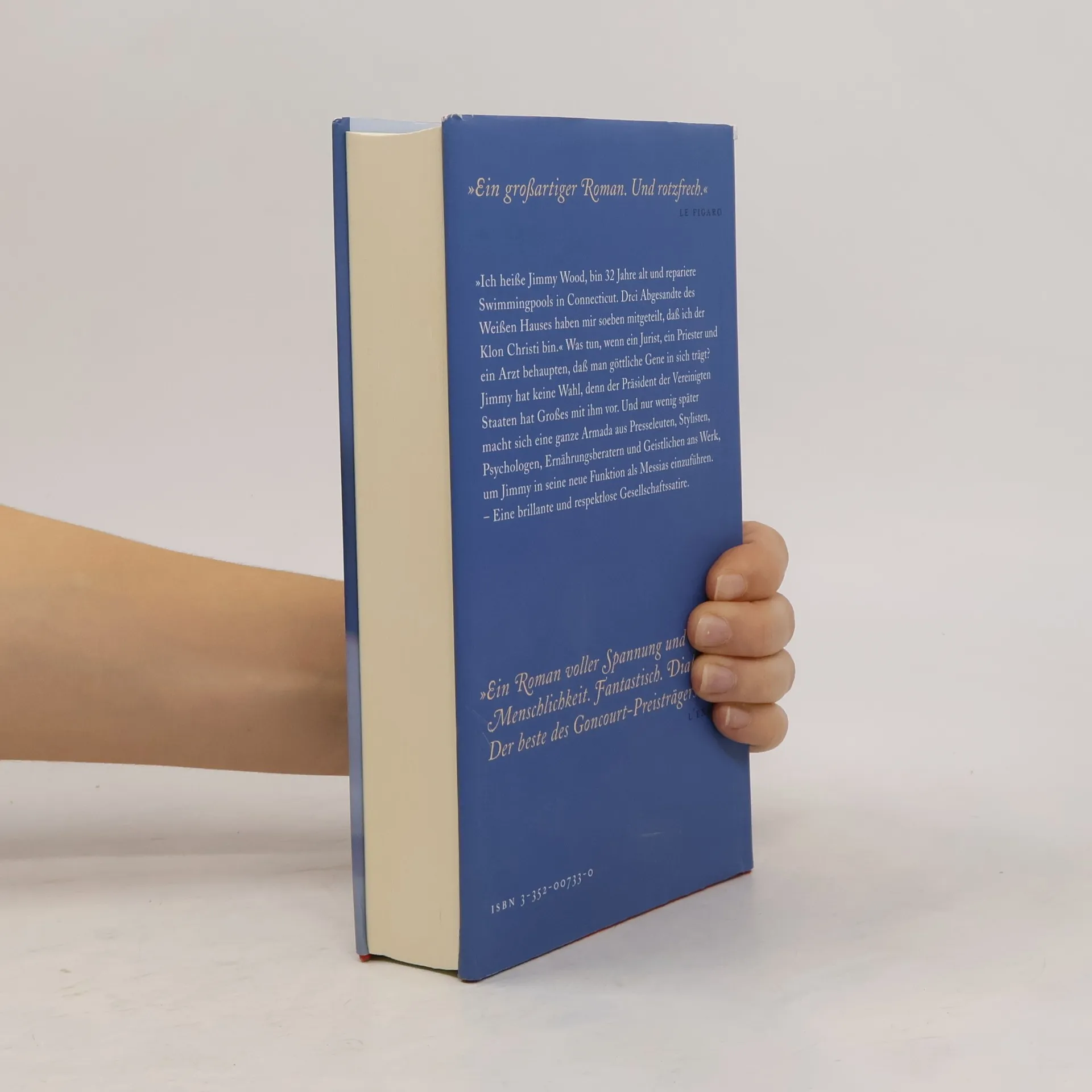 "Ich heiße Jimmy Wood, bin 32 Jahre alt und repariere Swimmingpools in Connecticut. Drei Abgesandte des Weißen Hauses haben mir soeben mitgeteilt, daß ich der Klon Christi bin."(Amazon)