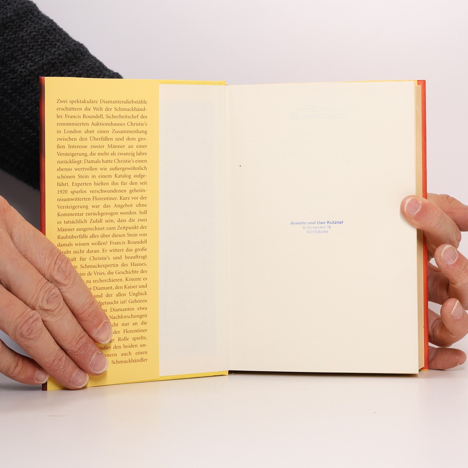 Einst zierte er eine Götterstatue und faszinierte Maharadschas, Könige und Kaiser. Als ›Florentiner‹ und wertvollster Diamant aller Zeiten wurde er unter den Mächtigsten der Welt weitergereicht. Doch allen hat er Unglück gebracht, als läge ein Fluch auf dem Stein. Bis er auf rätselhafte Weise verschwand. Wien 2005. Als ein wertvoller Diamant unbekannter Herkunft im Auktionshaus Christie’s auftaucht, wittert dieses ein Jahrhundertgeschäft. Experten halten ihn für den geheimnisumwitterten ›Florentiner‹, und das renommierte Haus betraut seine beste Expertin, die junge Marie-Claire, mit den Recherchen. Ihre Nachforschungen führen Marie-Claire nicht nur zu den Schauplätzen, an denen der Diamant seine geschichtsträchtige Rolle spielte, sondern auch zu drei geheimnisvollen Männern, die allesamt Interesse zeigen, den ›Florentiner‹ ihr Eigen zu nennen. Doch was sind ihre wahren Beweggründe? Ist einer von ihnen gar Mitglied des Ordens der Ritter vom Goldenen Vlies, dem seit jeher die mächtigsten Persönlichkeiten Europas angehören? Marie-Claire erliegt dem Charme und den selbstlosen Bekundungen der Männer, bis sie erkennen muss, dass sie sich damit in höchste Gefahr begibt. Hat der sagenumwobene Diamant erneut begonnen, seine fatale Macht zu entfalten?