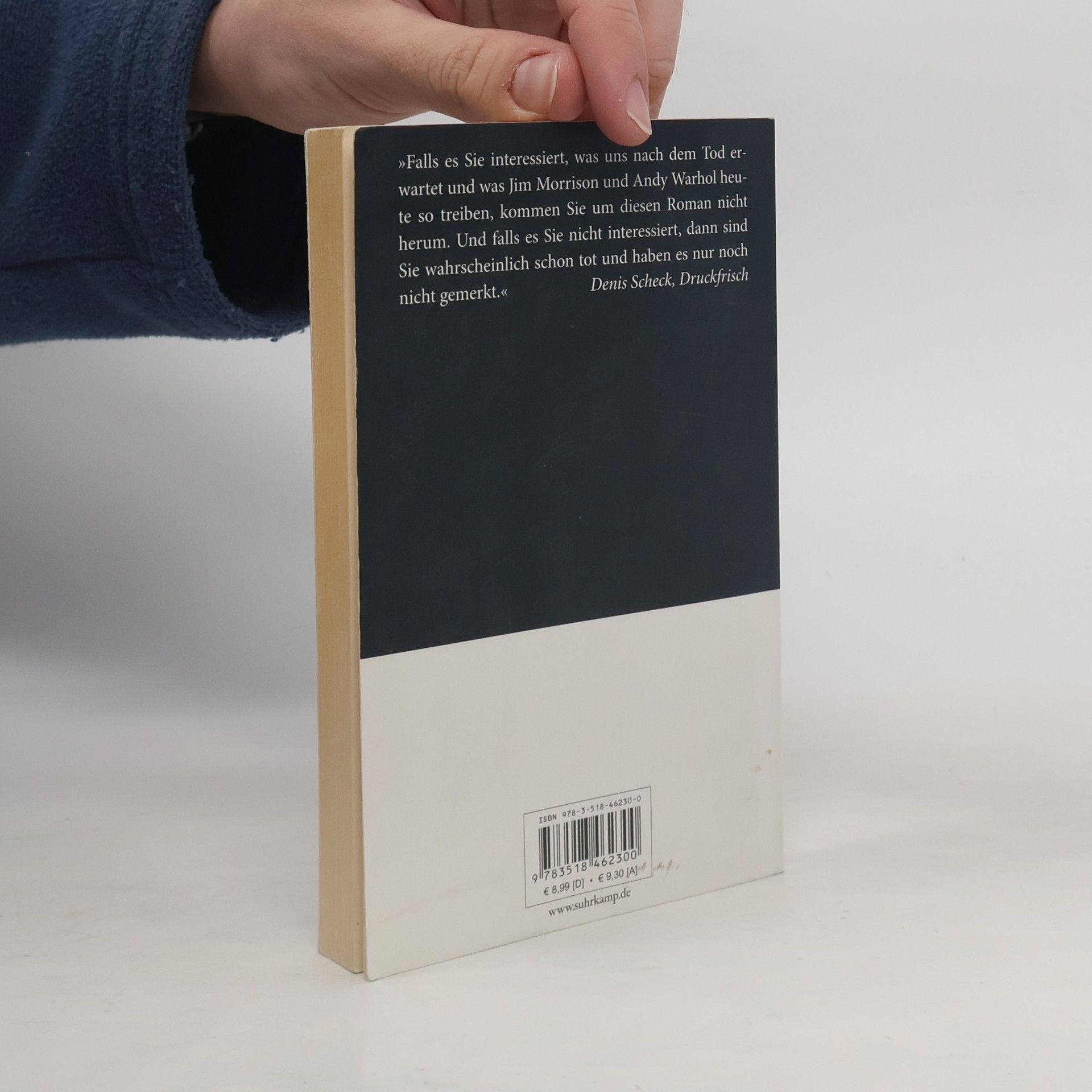 Stuttgart, Café Rösler, Samstag, den 3. April 2004 (vormittags) – ein Mann trinkt. Ralph Zimmermann ist allein mit sich und dem Alkohol. Oder auch nicht. Bei ihm sind Andy Warhol, Edie Sedgwick, Jim Morrison und nicht zuletzt seine Geliebte Joey. Tot zwar allesamt, aber doch anwesend genug, um einen Stift zumindest auf glatter Fläche ein paar Millimeter rollen zu lassen. Und natürlich, um zu kommentieren, was Ralphi-Ralph erzählt: von sich, seinem Leben, seiner Liebe und seinem eigenen Ausflug ins Totenreich. »Falls es Sie interessiert, was uns nach dem Tod erwartet und was Jim Morrison und Andy Warhol heute so treiben, kommen Sie um diesen Roman nicht herum. Und falls es Sie nicht interessiert, dann sind Sie wahrscheinlich schon tot und haben es nur noch nicht gemerkt.« Denis Scheck in Druckfrisch, ARD