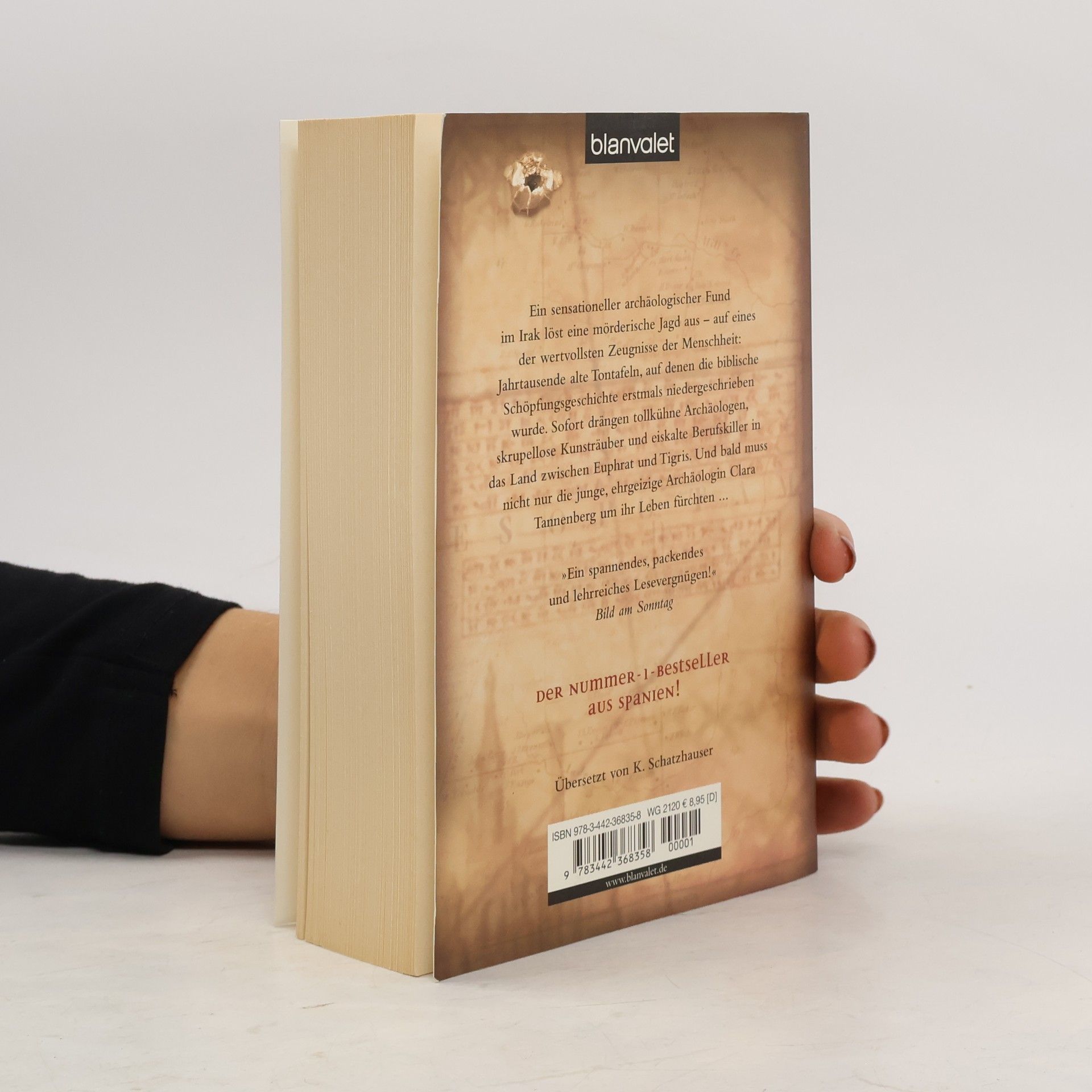Ein biblisches Geheimnis. Am falschen Ort. In den falschen Händen. Eine junge deutsche Archäologin stößt im Irak auf einen sensationellen Fund. Der Beginn einer mörderischen Jagd nach einem der größten Geheimnisse der Bibel. Ein sensationeller archäologischer Fund im Irak löst eine mörderische Jagd aus - auf eines der wertvollsten Zeugnisse der Menschheit: Jahrtausende alte Tontafeln, auf denen die biblische Schöpfungsgeschichte erstmals niedergeschrieben wurde. Sofort drängen tollkühne Archäologen, skrupellose Kunsträuber und eiskalte Berufskiller in das Land zwischen Euphrat und Tigris. Und bald muss nicht nur die junge, ehrgeizige Archäologin Clara Tannenberg um ihr Leben fürchten.
