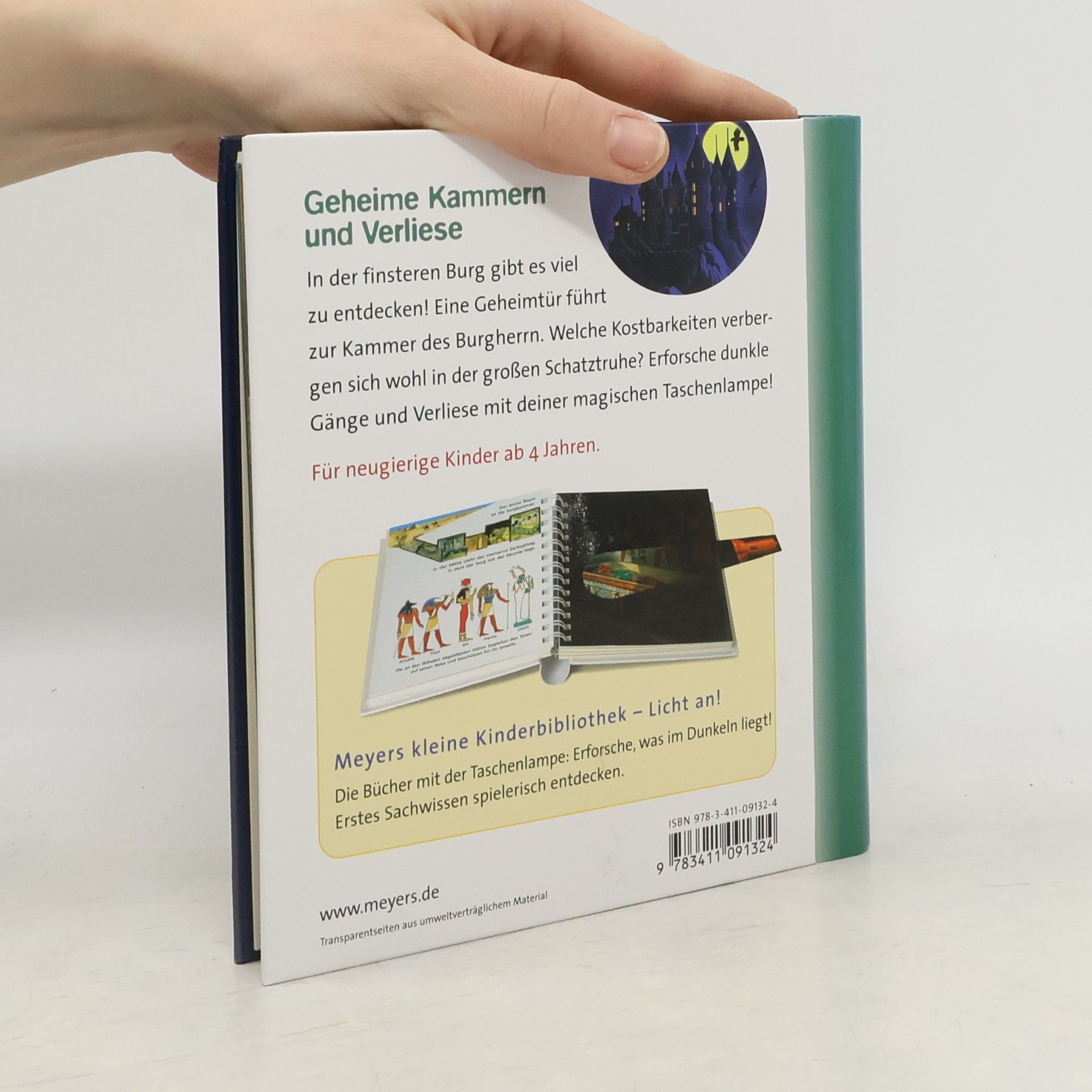 Die finstere Burg birgt viele Geheimnisse! Hier lernen Kinder spielerisch, was es hinter versteckten Geheimtüren zu entdecken gibt, wie ein Verlies von innen aussieht, was sich in den Vorrats- und Schatzkammern befindet oder wo die meisten Burgen erbaut wurden. In der spannenden Sachbilderbuchreihe „Meyers kleine Kinderbibliothek - Licht an!“ entdecken Kinder ab 4 Jahren, was normalerweise im Dunkeln liegt. Mit der beiliegenden „Taschenlampe“ aus Papier können die kleinen Forscher unter den Entdeckerfolien gezielt bunte Szenen „beleuchten“ und in verborgene Welten eintauchen.