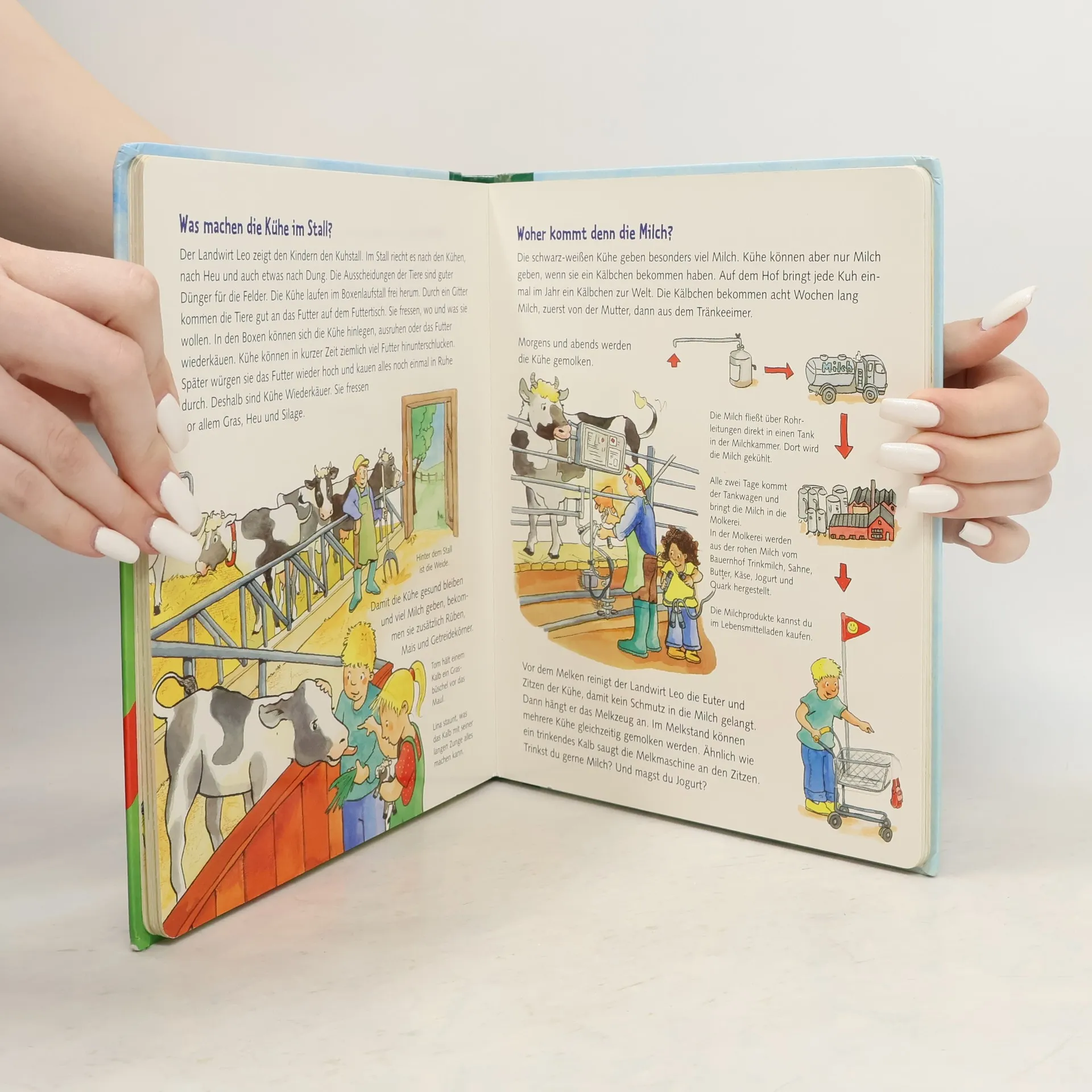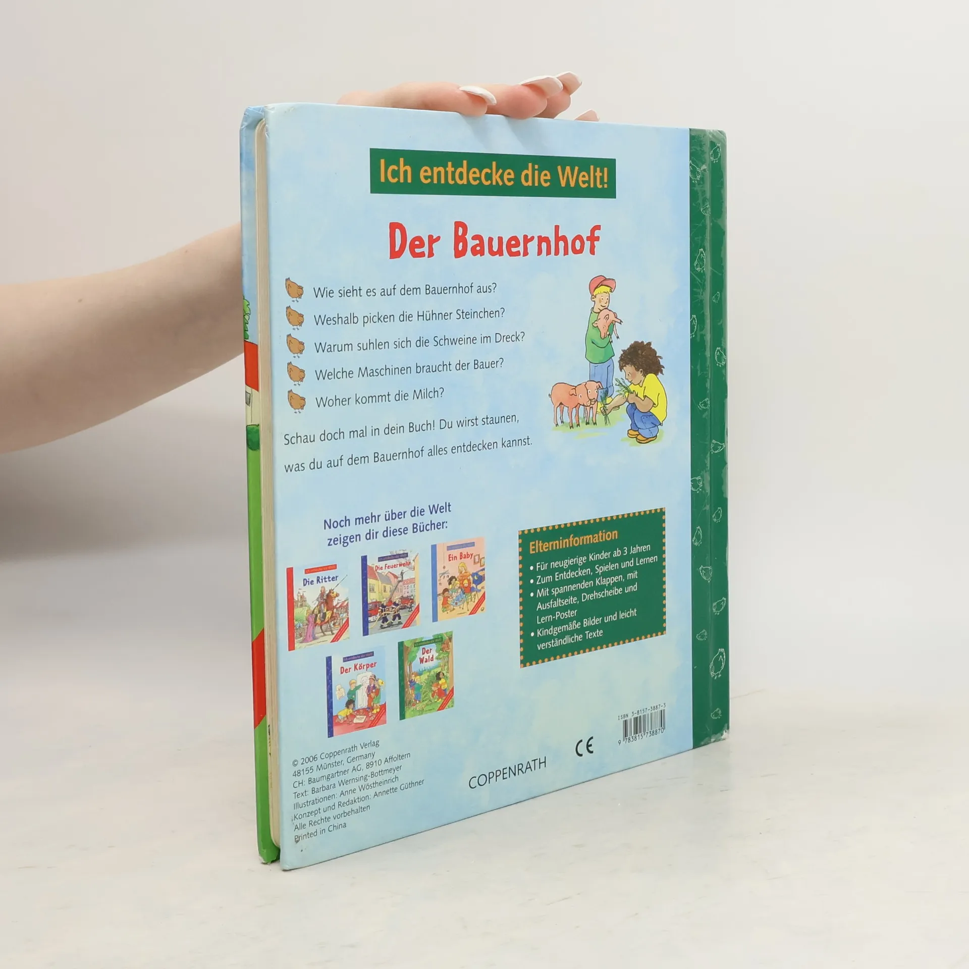 Wie sieht es auf dem Bauernhof aus? Weshalb picken die Hühner Steinchen? Warum suhlen sich die Schweine im Dreck? Welche Maschinen braucht der Bauer auf dem Feld? Woher kommt die Milch?.