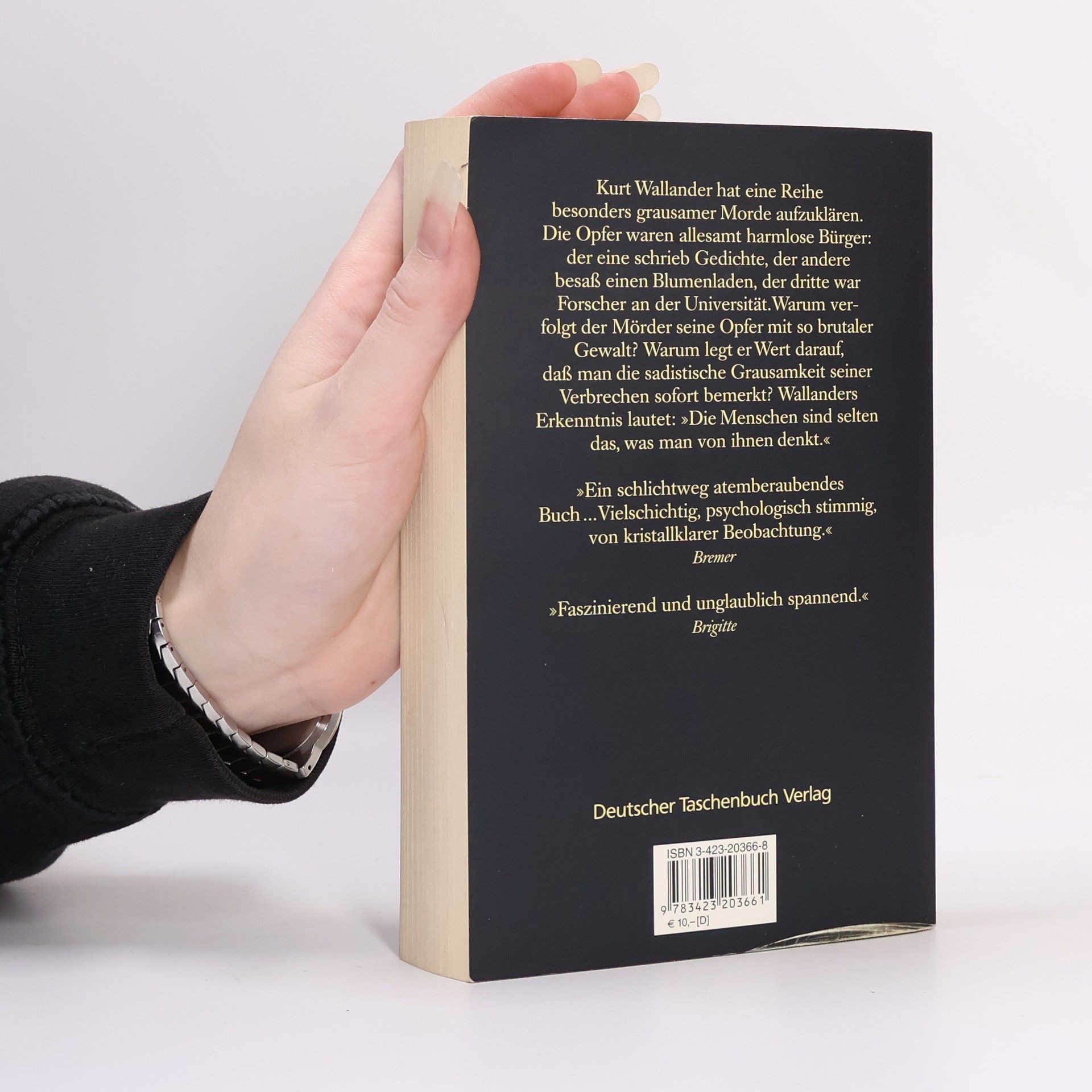 Wallander soll die brutalen Morde an fünf Männern – alles scheinbar achtbare Bürger – aufklären. Wallanders sechster Fall. Bei der Mordserie, die Kurt Wallander gerade aufzuklären hat, kann es selbst erfahrenen Polizisten kalt den Rücken hinunterlaufen: Einen alten Mann findet man in einer Pfahlgrube aufgespießt, einen anderen halbverhungert, beinahe nackt an einen Baum gebunden und erwürgt. Ein dritter wurde in einem mit Steinen beschwerten Sack in einem See ertränkt. Die Opfer scheinen auf den ersten Blick achtbare Bürger gewesen zu sein, doch stellt sich bei genaueren Nachforschungen sehr bald heraus, daß auch sie Frauen grausam mißhandelt haben. Wenn nun aber der Mord die Rache eines Opfers an Mördern und Vergewaltigern ist, muß Wallander sich beeilen, bevor das nächste, noch grausamere Verbrechen geschieht ...