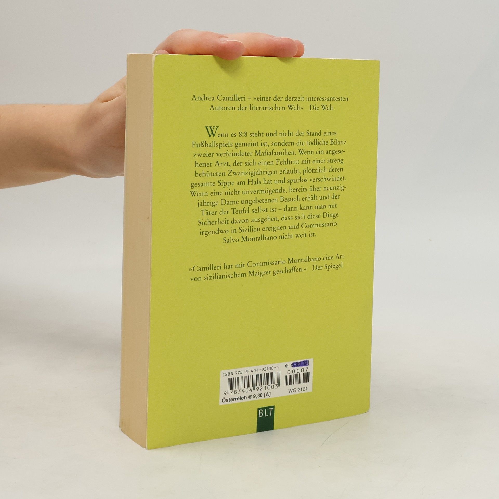 Wenn es 8:8 steht und nicht der Stand eines Fußballspiels gemeint ist, sondern die tödliche Bilanz zweier verfeindeter Mafia-Familien. Wenn ein angesehener Arzt, der sich einen Fehltritt mit einer streng behüteten Zwanzigjährigen erlaubt, plötzlich deren gesamte Sippe am Hals hat und spurlos verschwindet. Wenn eine nicht unvermögende, bereits über neunzigjährige Dame ungebetenen Besuch erhält und der Täter der Teufel selbst ist - dann kann man mit Sicherheit davon ausgehen, dass dich diese Dinge irgendwo in Sizilien ereignen und Commissario Montalbano nicht weit ist.