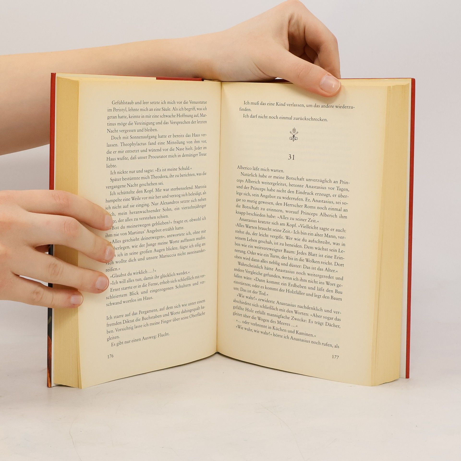 Rom zu Beginn des 10. Jahrhunderts. Die Sarazenen bedrohen die Stadt: Marozia, die Tochter einer Adelsfamilie, lebenshungrig und wegen ihrer Schönheit verehrt, will ihre ehrgeizige Mutter an Einfluß übertreffen. Vorerst muß sie sich jedoch den Plänen ihrer Mutter fügen. Sie soll einen ungeliebten Mann heiraten und sich sogar dem Papst hingeben, der dann Vater ihres ersten Sohnes wird. Aber Marozia findet eine eigene Antwort auf diese Erniedrigungen. Das Kind des Papstes soll den Heiligen Stuhl besteigen. Marozia will Kaiserin werden - und "heimliche Päpstin". Bald wird sie erkennen, daß der Aufstieg zu höchster Macht jedoch teuer erkauft ist.