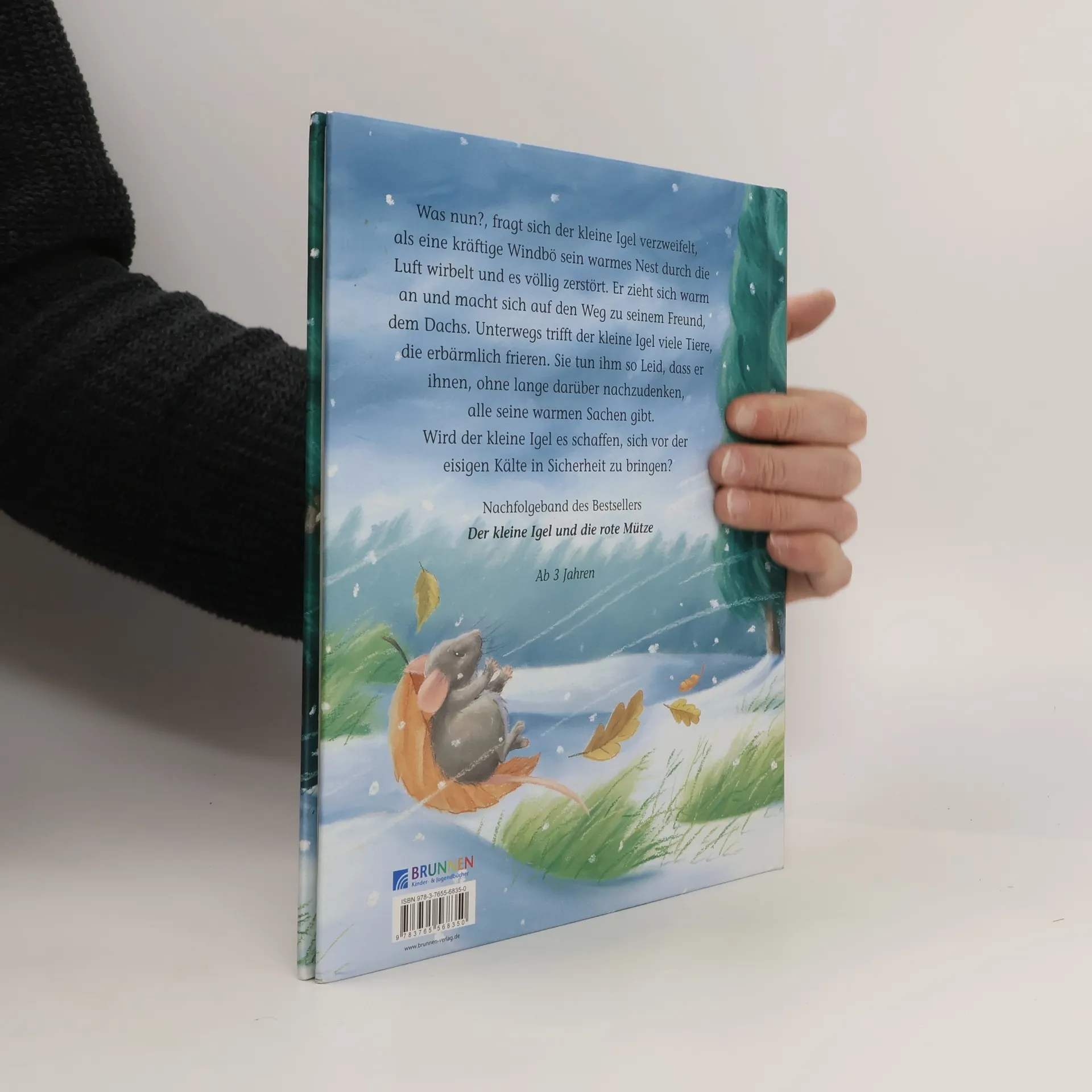 Was nun?, fragt sich der kleine Igel verzweifelt, nachdem eine kräftige Windbö sein Nest zerstört hat. Er zieht sich warm an und macht sich auf den Weg zu seinem Freund, dem Dachs. Unterwegs trifft der kleine Igel viele Tiere, die erbärmlich frieren. Sie tun ihm so leid, dass er nach und nach seinen Schal, die Mütze und seine Handschuhe verschenkt. Wird der kleine Igel es trotzdem schaffen, sich in Sicherheit zu bringen? Für Kinder ab 3 Jahren.