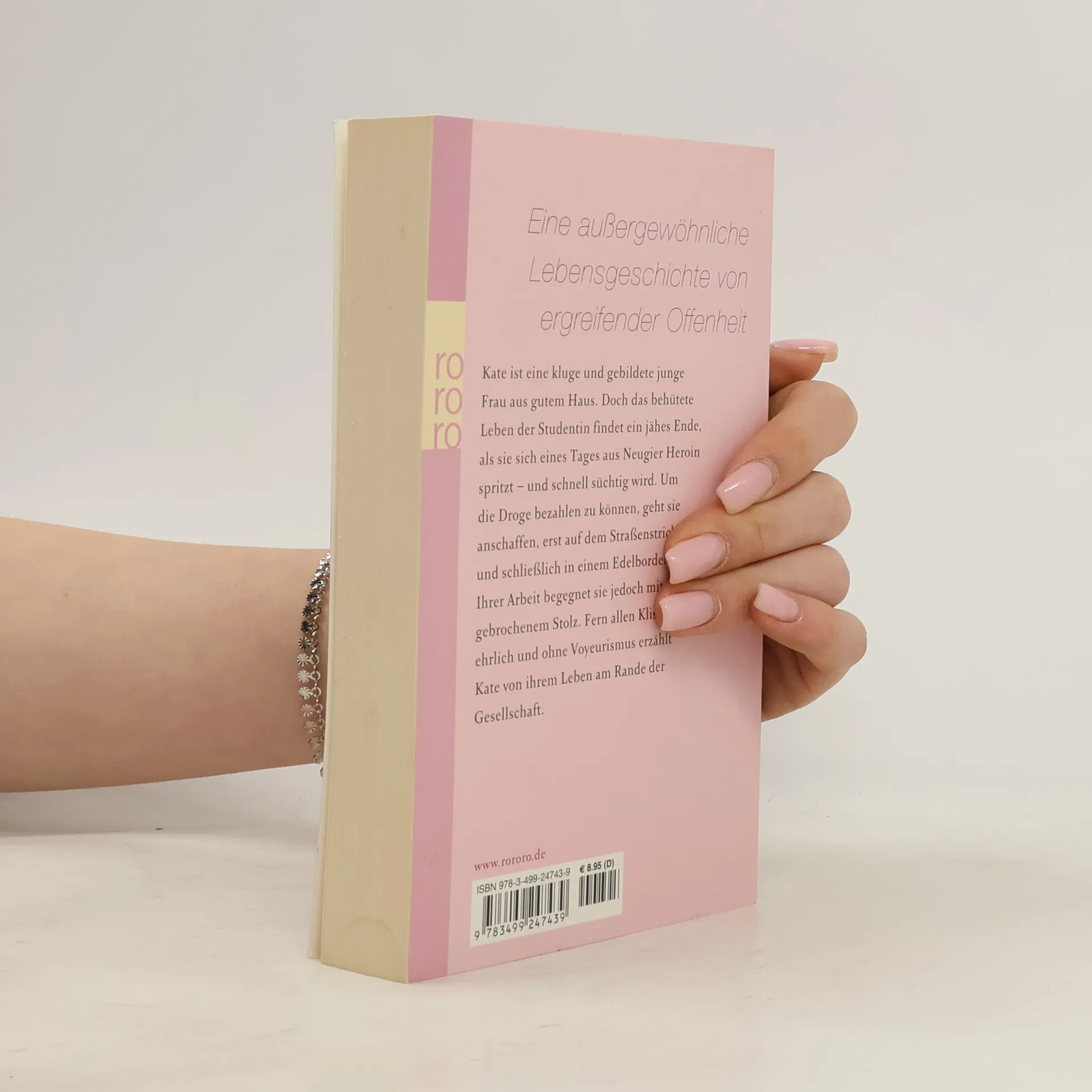 Eine außergewöhnliche Lebensgeschichte von ergreifender Offenheit Kate ist eine kluge und gebildete junge Frau aus gutem Haus. Doch das behütete Leben der Studentin findet ein jähes Ende, als sie sich eines Tages aus Neugier Heroin spritzt – und schnell süchtig wird. Um die Droge zu bezahlen, geht sie anschaffen, erst auf dem Straßenstrich und schließlich in einem Edelbordell. Ihrer Arbeit begegnet sie jedoch mit ungebrochenem Stolz. Fern aller Klischees, ehrlich und ohne Voyeurismus erzählt Kate von ihrem Leben am Rande der Gesellschaft.