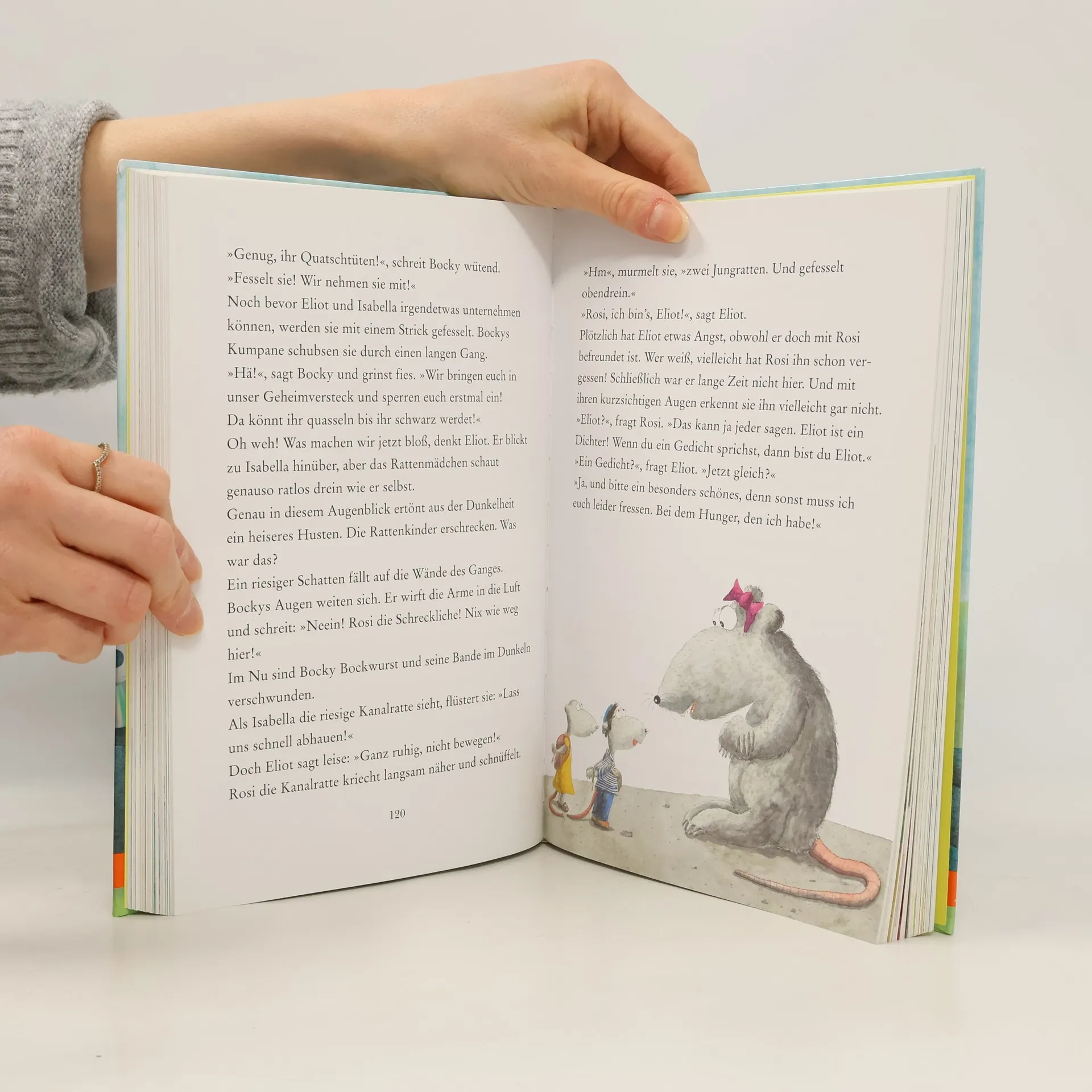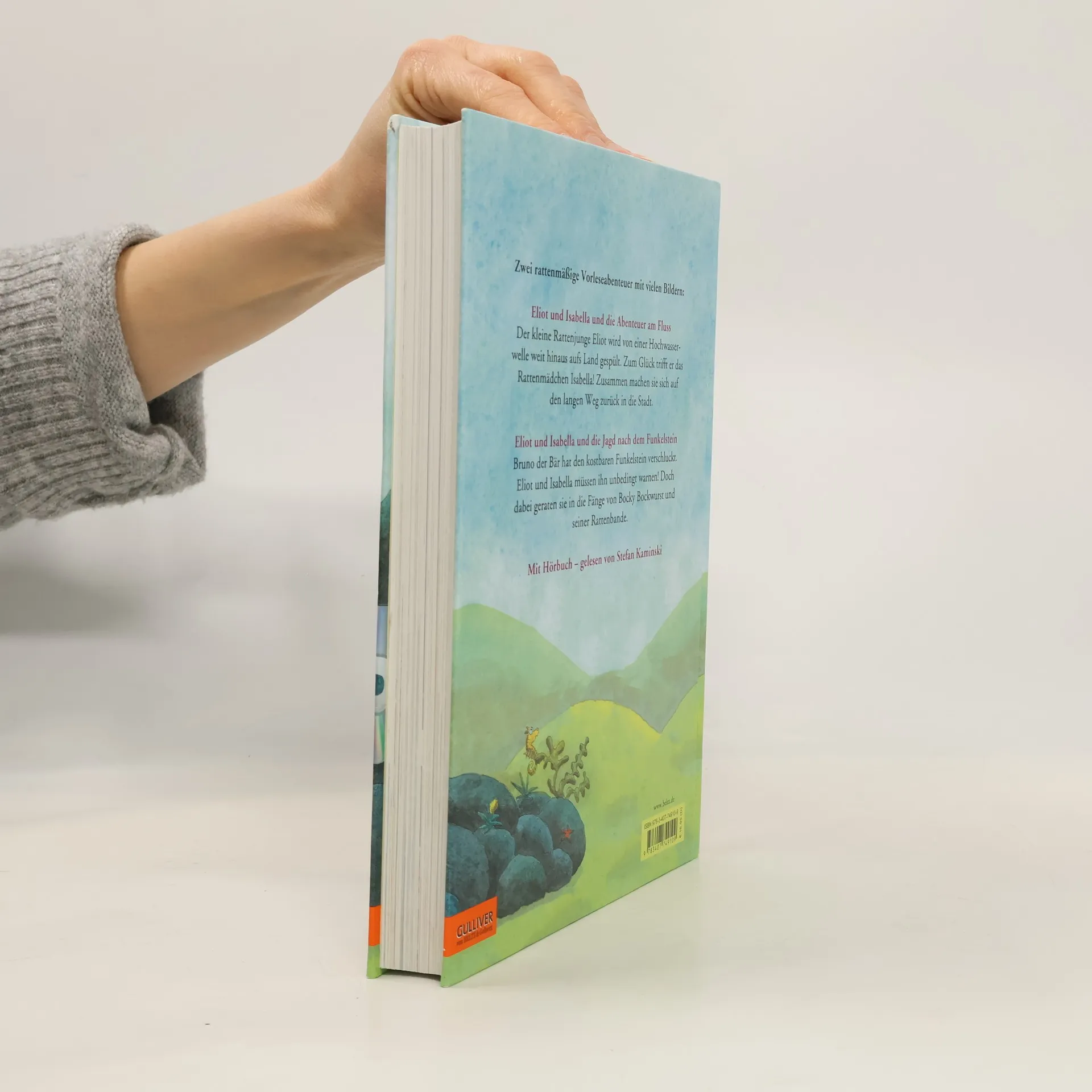 Eliot und Isabella und die Abenteuer am Fluss: Der kleine Rattenjunge Eliot, wird von einer Hochwasserwelle weit hinaus aufs Land gespült. Zum Glück trifft er die mutige Isabella. Doch als ob der lange Weg zurück in die Stadt nicht schon gefährlich genug wäre, macht ihnen Rüpelratte Bocky Bockwurst auch noch das Leben schwer. In die Fänge seiner Bande dürfen sie auf keinen Fall geraten! Eliot und Isabella und die Jagd nach dem Funkelstein: Eliot, der kleine Rattenjunge, und seine Freundin Isabella müssen Bruno den Bär unbedingt warnen. Seit er den Funkelstein verschluckt hat, sind ihm Kater Schredder und der gefährlicher Adler auf den Fersen. Es ist eine wilde Verfolgungsjagd, bei der natürlich auch Bocky Bockwurst und seine Kumpanen mitmischen.