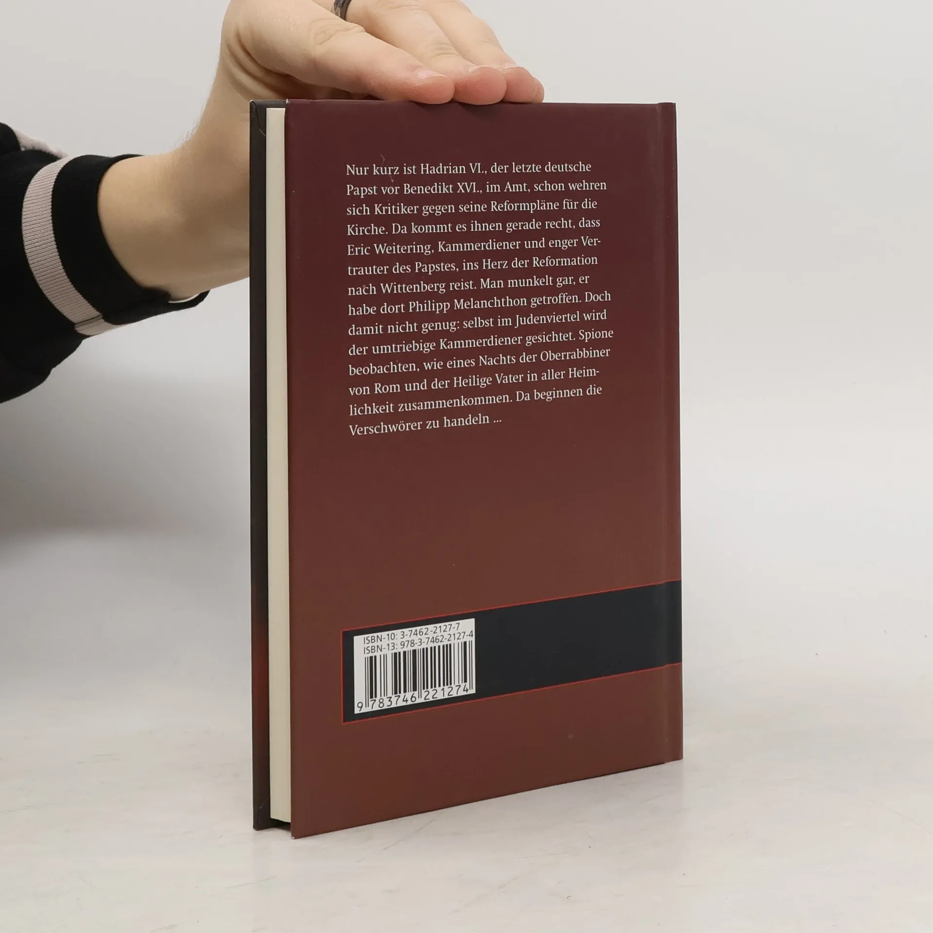 Ein historischer Krimi über den letzten deutschen Papst vor Benedikt XVI. Nur kurz ist Hadrian VI. im Amt, schon wehren sich Kritiker gegen seine Reformpläne für die Kirche. Da kommt es ihnen gerade recht, dass Eric Weitering, Kammerdiener und enger Vertrauter des Papstes, ins Herz der Reformation nach Wittenberg reist. Man munkelt gar, er habe dort Philipp Melanchthon getroffen. Doch damit nicht genug: selbst im Judenviertel von Rom wird der umtriebige Kammerdiener gesichtet. Spione beobachten, wie eines Nachts der Oberrabbiner von Rom und der Heilige Vater in aller Heimlichkeit zusammenkommen. Da beginnen die Verschwörer zu handeln …