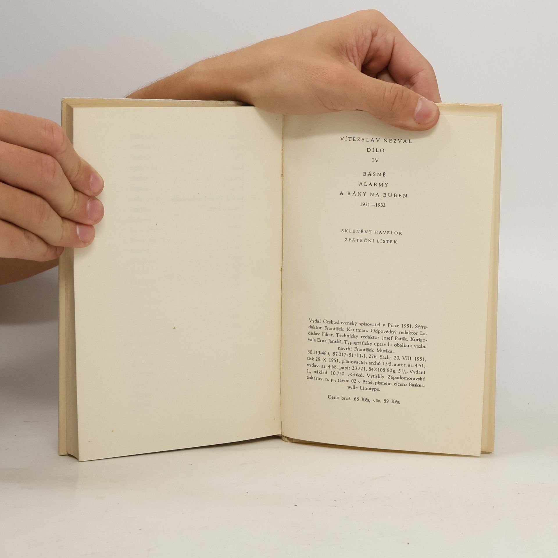 Čtvrtý svazek Díla V.N. přináší dvě sbírky: Skleněný havelok a Zpáteční lístek.
