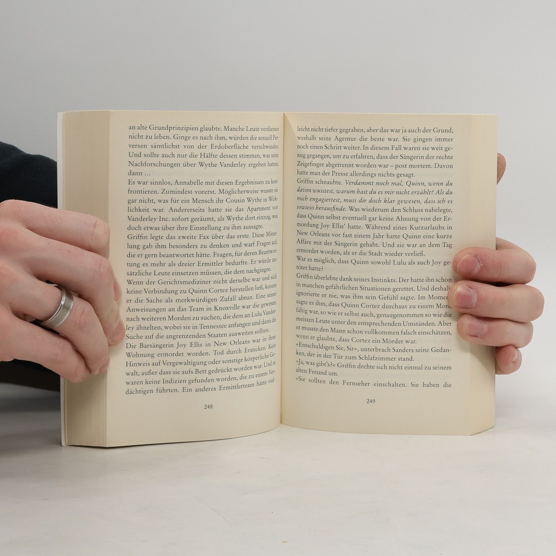 Irgendetwas stimmt nicht, das spürt die junge Frau sofort, als ihr Liebhaber den Raum betritt. Aber sie verdrängt ihr Unbehagen. Es ist doch Quinn, ihre große Liebe. Kurze Zeit später ist Lulu Vanderley tot ... Staranwalt Quinn Cortez hat für die fragliche Zeit kein Alibi. Als weitere seiner ehemaligen Freundinnen getötet werden, zieht sich die Schlinge um ihn langsam zu. Unterstützung erhält er von unerwarteter Seite: Annabelle, die ebenso schöne wie unnahbare Cousine der Ermordeten, kann nicht glauben, dass der kultivierte Anwalt ein Mörder sein soll ...