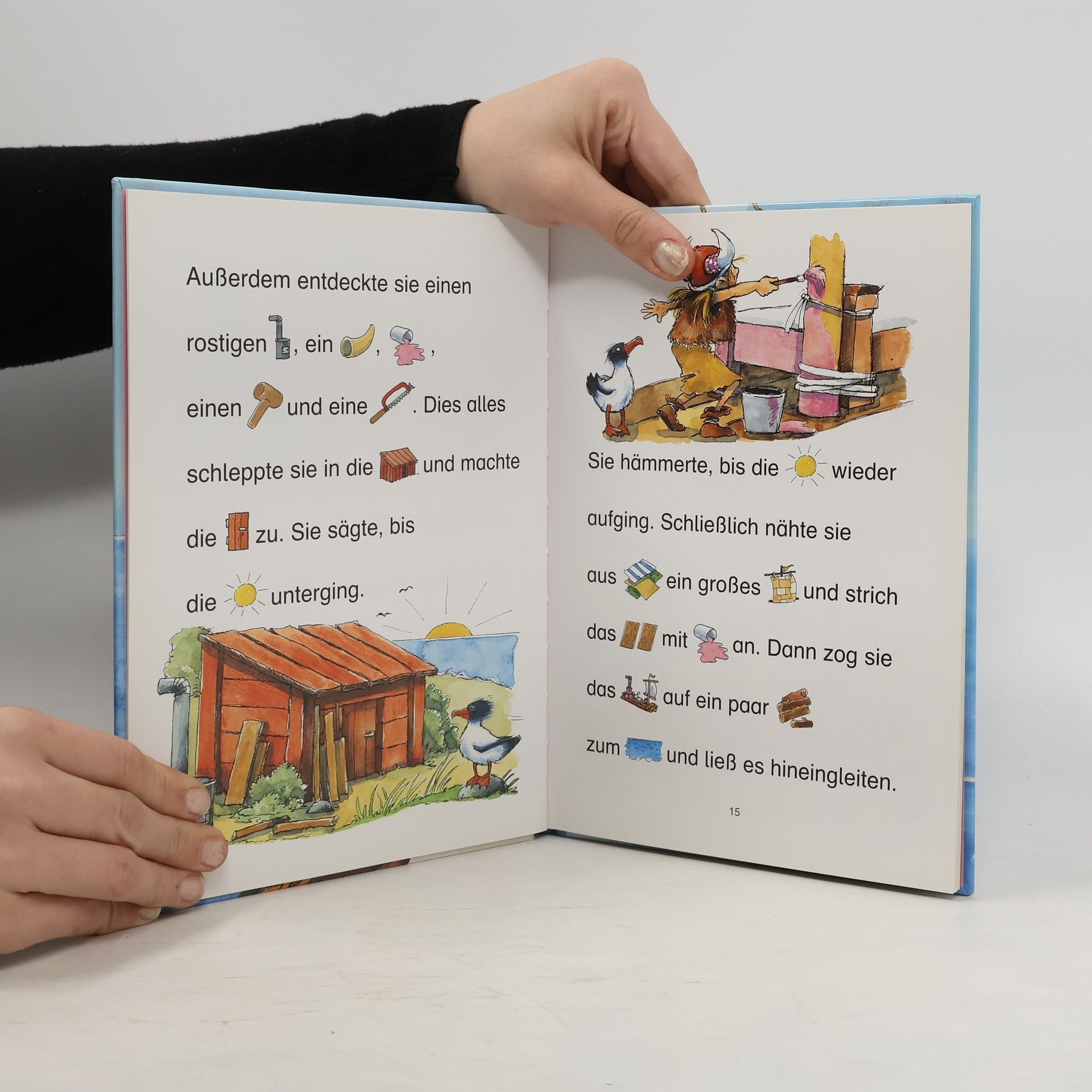 Das Wikingermädchen Ingun hat keine Lust, wie ihre Schwestern Decken zu weben oder Felle zu nähen. Sie will lieber mit auf das Meer hinaus! Weil ihr Papa das nicht erlaubt, zimmert sich Ingun eben ihr eigenes Boot ... - Eine abenteuerliche Geschichte für Leseanfänger ab 5, bei der die Substantive durch Bilder ersetzt sind.