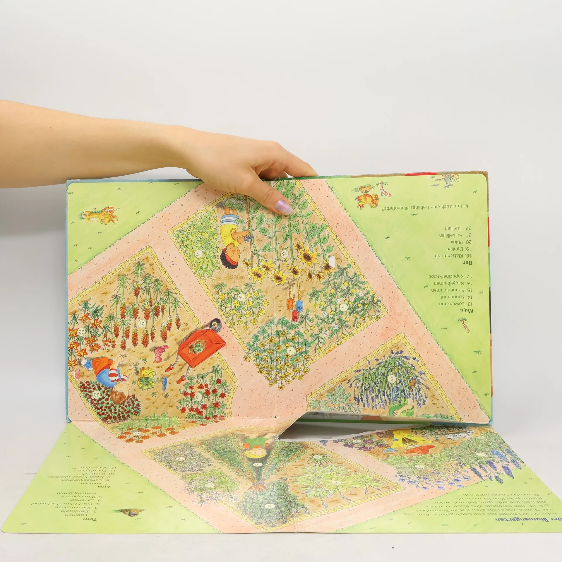 * Welche Geräte benutzt ein Gärtner? * Wie kommt man an Pflanzen für den Garten? * Welche Pflanzen düngen den Boden? * Kann man auf dem Balkon Gemüse ernten? * Welche Blumen locken Schmetterlinge an?