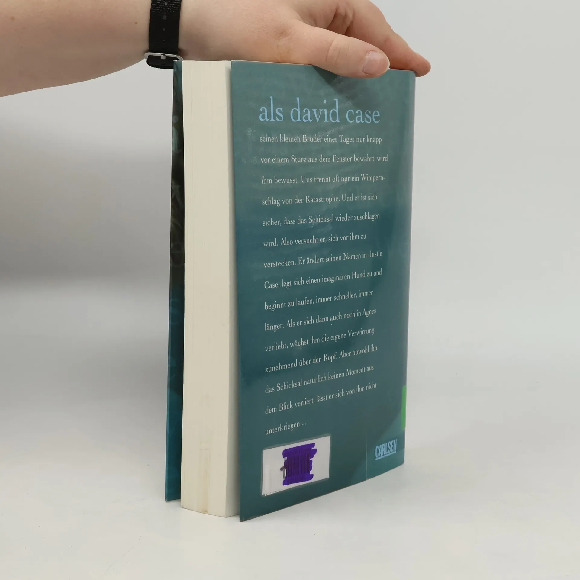 Als David Case seinen kleinen Bruder eines Tages nur knapp vor einem Sturz aus dem Fenster bewahrt, wird ihm schlagartig bewusst: Uns trennt oft nur ein Wimpernschlag von der Katastrophe. Und er ist sich sicher: das Schicksal wird wieder zuschlagen. Also versucht er, sich vor ihm zu verstecken: er ändert seinen Namen in Justin Case, trägt die seltsame Mode, die das seltsame Mädchen Agnes ihm aussucht und beginnt zu laufen, immer schneller, immer länger – wobei er nie seinen Windhund Boy einholen wird, der nur in seinem Kopf existiert und den außer ihm nur sein Freund Peter sieht. Als er sicherheitshalber auch noch sein Zuhause verlässt und die Freundschaft zu Agnes immer komplizierter wird, wächst ihm die eigene Verwirrung zunehmend über den Kopf. Aber obwohl ihn das Schicksal natürlich keinen Moment aus dem Blick verliert, lässt er sich von ihm nicht unterkriegen.