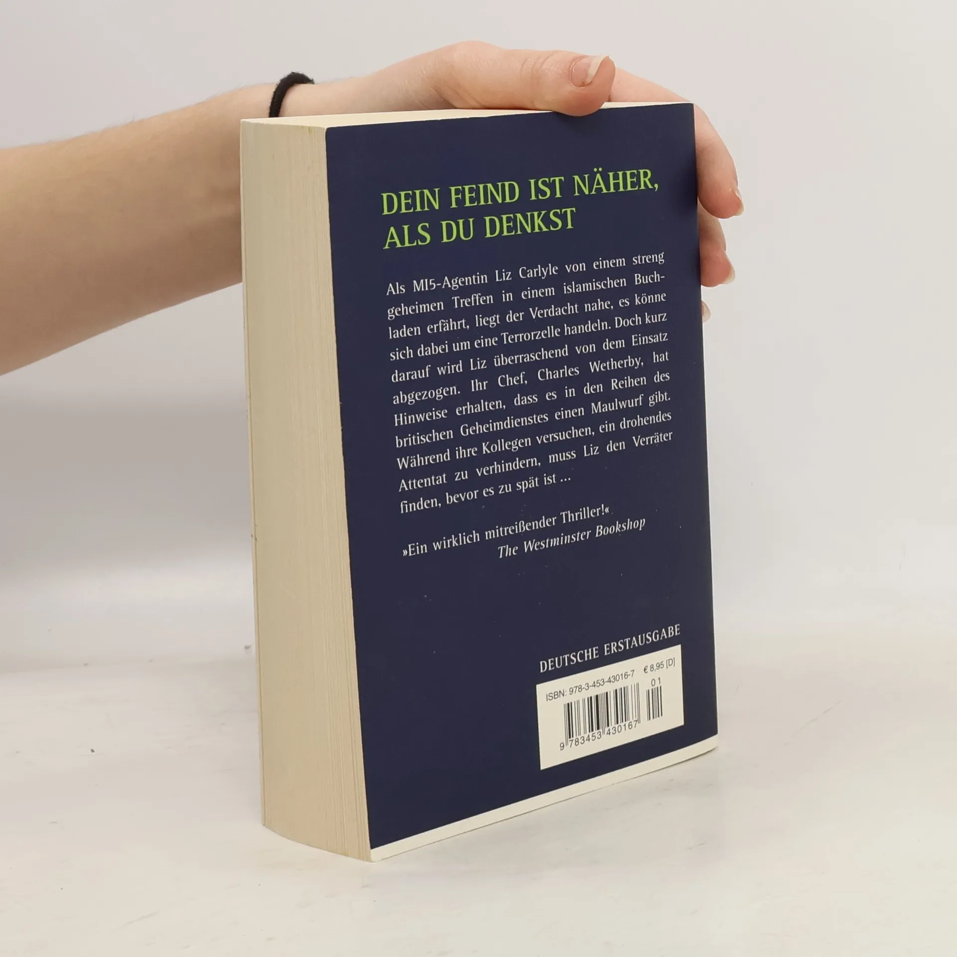 Dein Feind ist näher, als du denkst MI 5-Agentin Liz Carlyle erfährt über einen ihrer Agenten von verdächtigen Treffen in einem islamischen Buchladen. Der Verdacht liegt nahe, es könne sich dabei um eine Terrorzelle handeln. Doch kurz darauf wird Liz von ihrem Chef Charles Wetherby überraschend von dem Einsatz abgezogen. Denn Wetherby hat einen Hinweis erhalten, dass es in den Reihen des britischen Geheimdienstes einen Maulwurf gibt. Und während ihre Kollegen versuchen, ein drohendes Attentat zu verhindern, muss Liz den Verräter finden, bevor es zu spät ist…