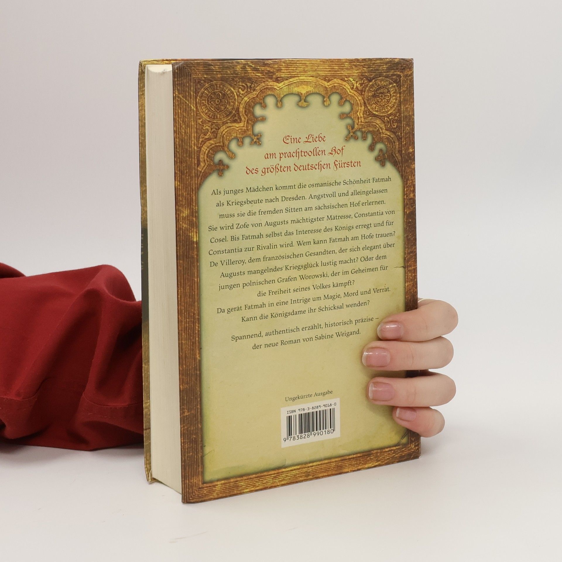 Als junges Mädchen kommt die osmanische Schönheit Fatmah als Kriegsbeute nach Dresden. Angstvoll und alleingelassen muss sie die fremden Sitten am sächsischen Hof erlernen. Sie wird Zofe von Augustus mächtigster Mätresse, Constantina von Cosel. Bis Fatmah selbst das Interesse des Königs erregt und für De Villeroy, dem französischen Gesandten, der sich elegant über Augustus mangelndes Kriegsglück lustig macht? Oder dem jungen polnischen Grafen Worowski, der im Geheimen für die Freiheit seines Volkes kämpft? Da gerät Fatmah in eine Intrige um Magie, Mord und Verrat. Kann die Königsdame ihr Schicksal wenden?