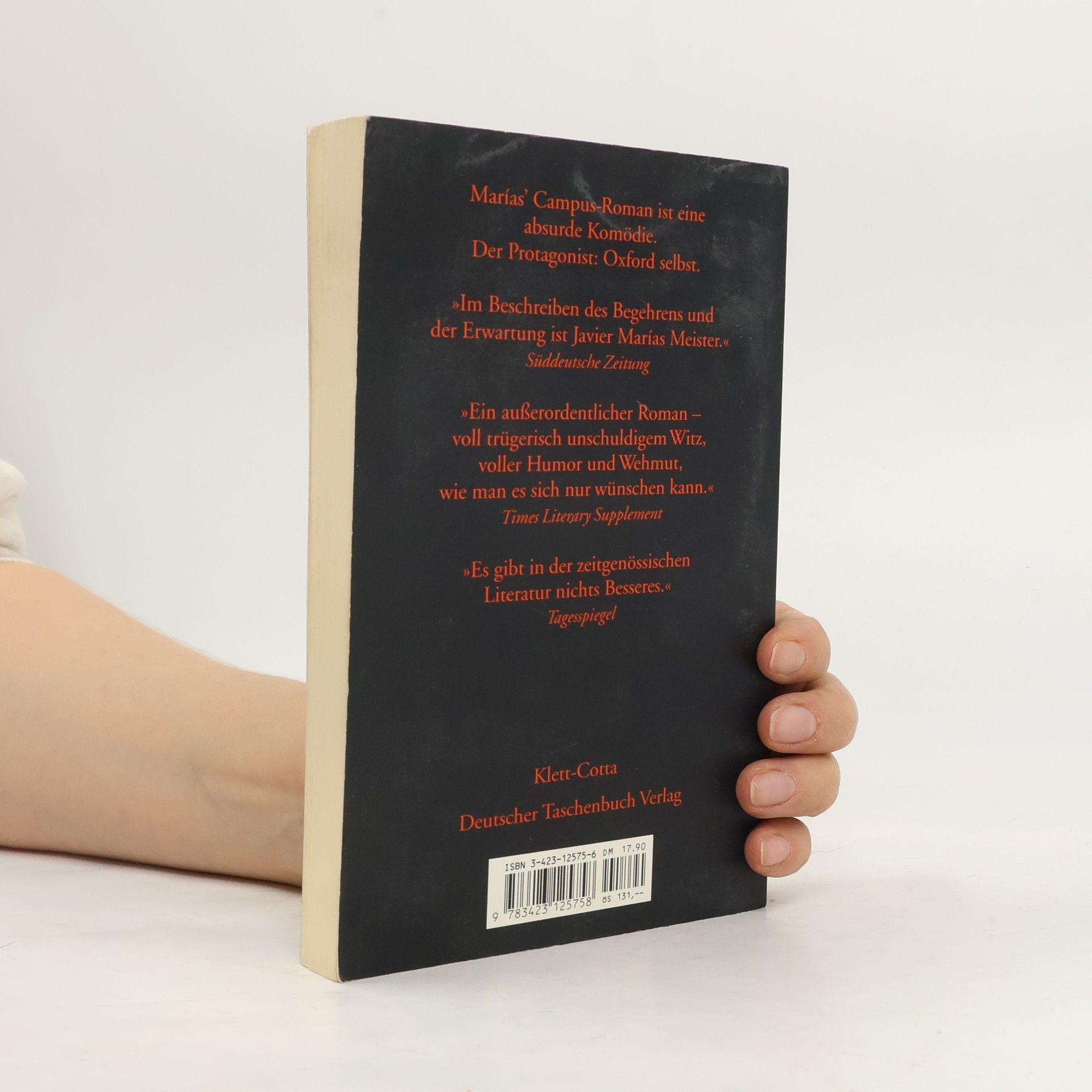 Bevor er fuhr, hatte man ihn gewarnt, daß in Oxford das einzig Wichtige die erotischen Phantasien seien. Da kommt also ein junger Spanier als Gastdozent nach Oxford, ins Paradies der Solisten, und macht die Erfahrung, wie einsam man sich in einer geschlossenen Gesellschaft fühlen kann. Um emotional nicht zu verhungern, beginnt er eine Affäre mit der verheirateten Dozentin Clare, in deren Blicken er bei einem grotesken Dinner seine eigene Kindheit wiederfindet. Doch erst in ihrer letzten gemeinsamen Nacht enthüllt sie ihr Geheimnis Javier Marías' Campus-Roman ist eine absurde Komödie; der Protagonist: Oxford selbst. Im Beschreiben des Begehrens und der Erwartung ist Javier Marías Meister. (Verena Auffermann in der „Süddeutschen Zeitung“).