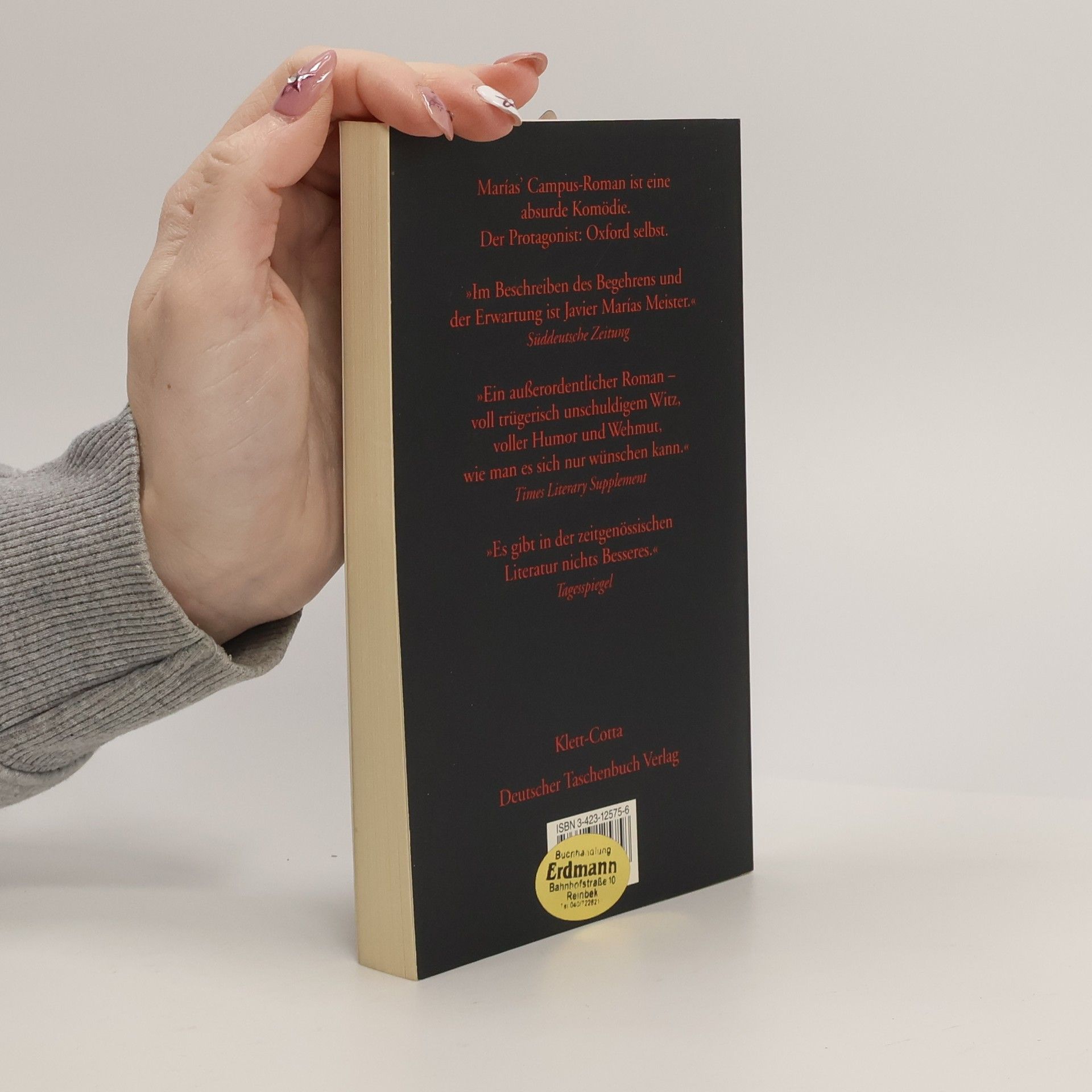 Bevor er fuhr, hatte man ihn gewarnt, daß in Oxford das einzig Wichtige die erotischen Phantasien seien. Da kommt also ein junger Spanier als Gastdozent nach Oxford, ins Paradies der Solisten, und macht die Erfahrung, wie einsam man sich in einer geschlossenen Gesellschaft fühlen kann. Um emotional nicht zu verhungern, beginnt er eine Affäre mit der verheirateten Dozentin Clare, in deren Blicken er bei einem grotesken Dinner seine eigene Kindheit wiederfindet. Doch erst in ihrer letzten gemeinsamen Nacht enthüllt sie ihr Geheimnis Javier Marías' Campus-Roman ist eine absurde Komödie; der Protagonist: Oxford selbst. Im Beschreiben des Begehrens und der Erwartung ist Javier Marías Meister. (Verena Auffermann in der „Süddeutschen Zeitung“).