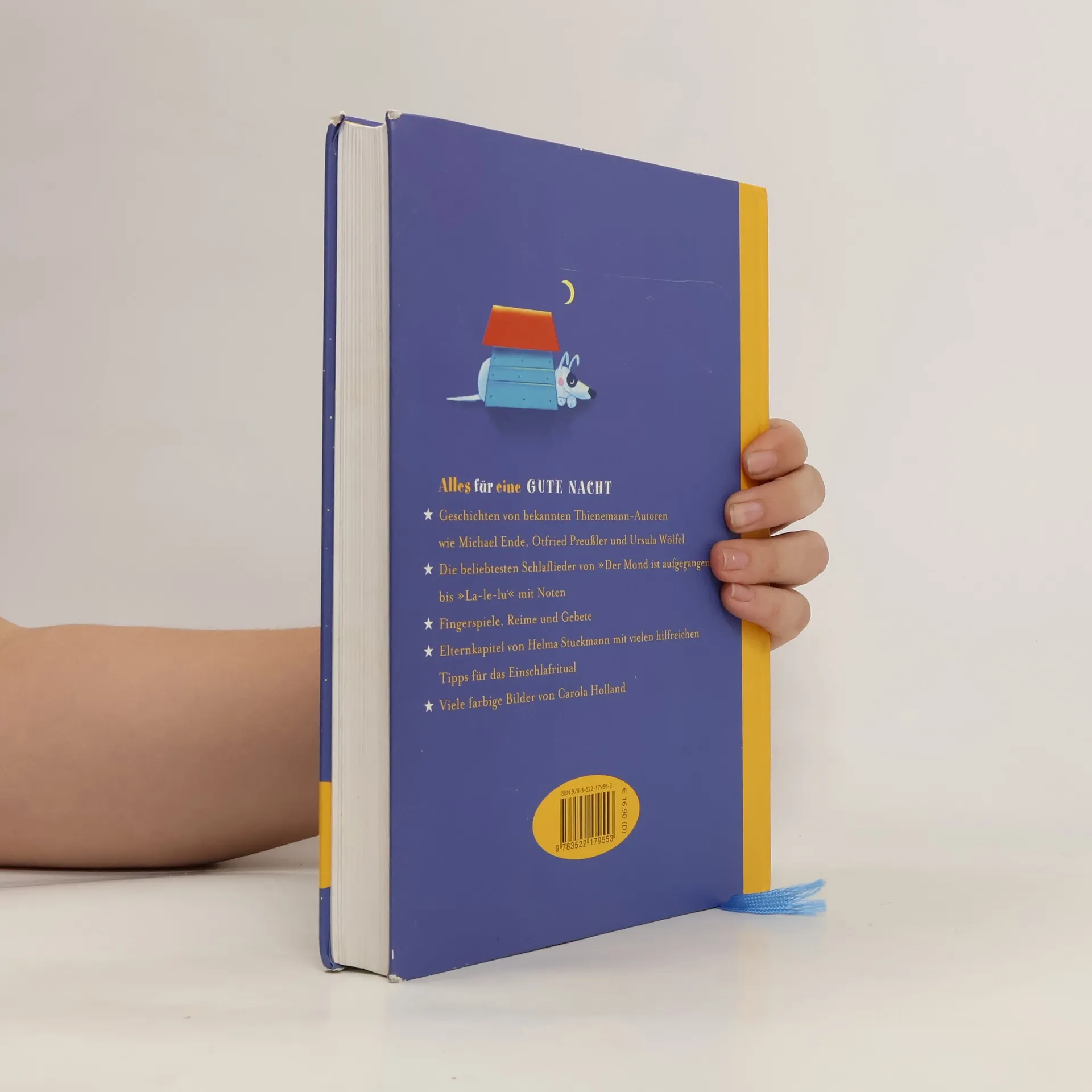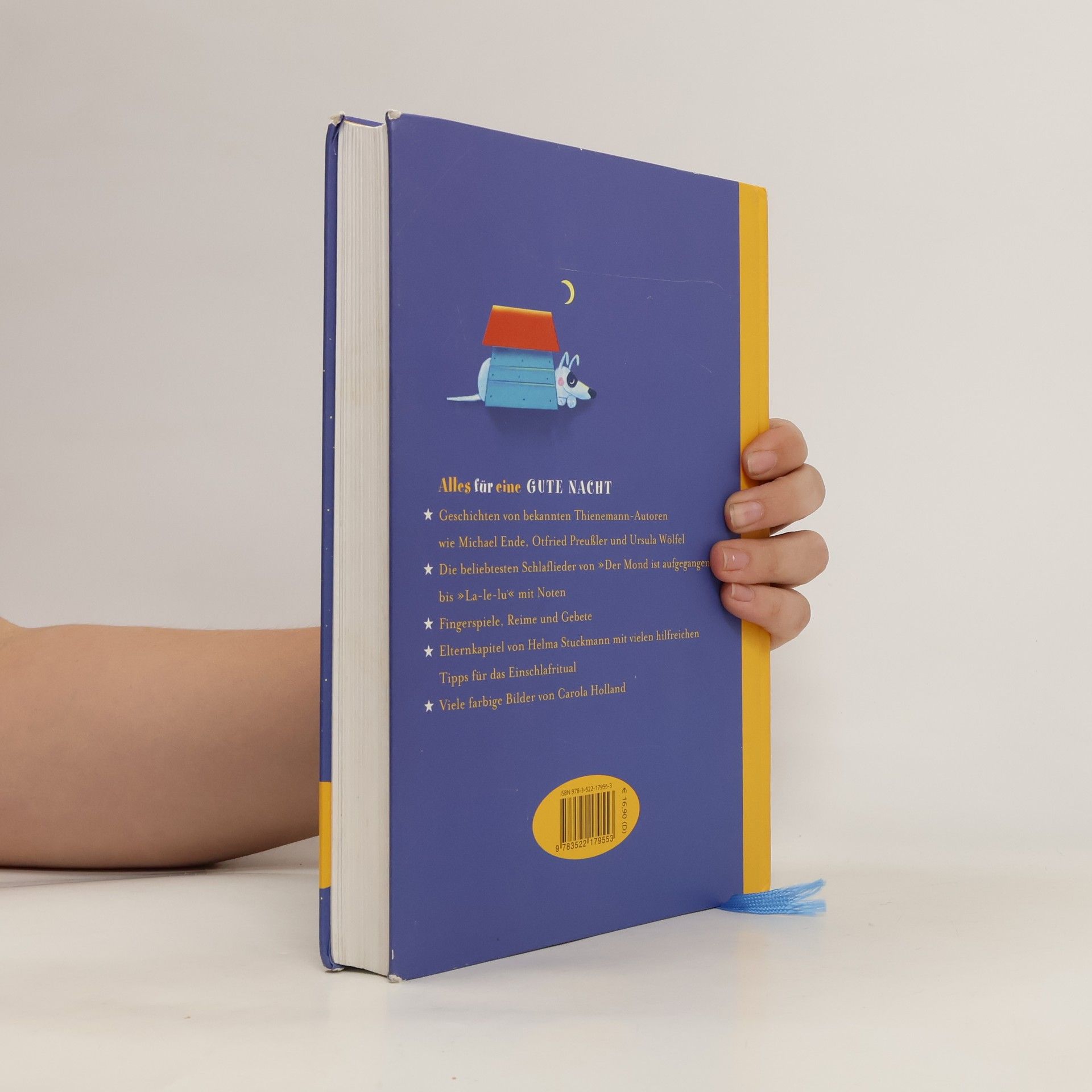 Wenn es Zeit ist, schlafen zu gehen, gibt es nicht Schöneres, als sich ins Bett zu kuscheln und den Tag gemeinsam ausklingen zu lassen. Und dazu gehört natürlich eine Gute-Nacht-Geschichte. Oder ein Schlaflied. Oder Fingerspiele, Reime und Gebete. In diesem Buch ist für jede Stimmung das Passende dabei. - Geschichten von bekannten Thienemann-Autoren wie Michael Ende, Otfried Preußler und Ursula Wölfel - Die beliebtesten Schlaflieder von „Der Mond ist aufgegangen“ bis „La-le-lu“ mit Noten - Mit vielen farbigen Illustrationen von Carola Holland - Elternkapitel von Helma Stuckmann mit vielen hilfreichen Tipps für das Einschlafritual Ab 4 Jahren