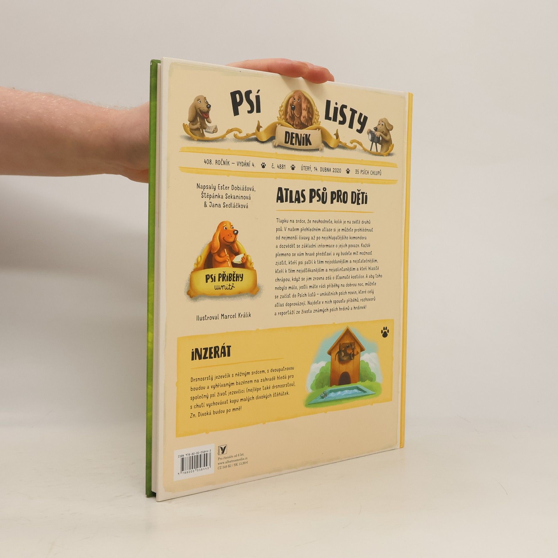 Tlapku na srdce, že neuhodneš, kolik je na světě druhů psů. V našem přehledném atlase si je můžeš prohlédnout od nejmenší čivavy až po nejchlupatějšího komondora a dozvědět se základní informace o jejich povaze. Skutečně byli dávnými předky psů divocí vlci? Jakým způsobem dokážou ovčáčtí a honáčtí psi zkrotit stádo splašených ovcí? A kteří psi mají na nohou plovací blány? Každé plemeno se ti hravě představí a ty budeš mít možnost zjistit, kteří psi patří k těm nejooddanějším a nejstatečnějším, kteří k těm nejuštěkanějším a nejuslintanějším a kteří hlasitě chrápou, když se jim zrovna zdá o šťavnaté kostičce. A aby toho nebylo málo, jestli máš rád příběhy na dobrou noc, můžeš se začíst do psích novin, které celý atlas doprovázejí. Najdeš v nich spoustu příběhů, rozhovorů a reportáží ze života známých i neznámých psích hrdinů!