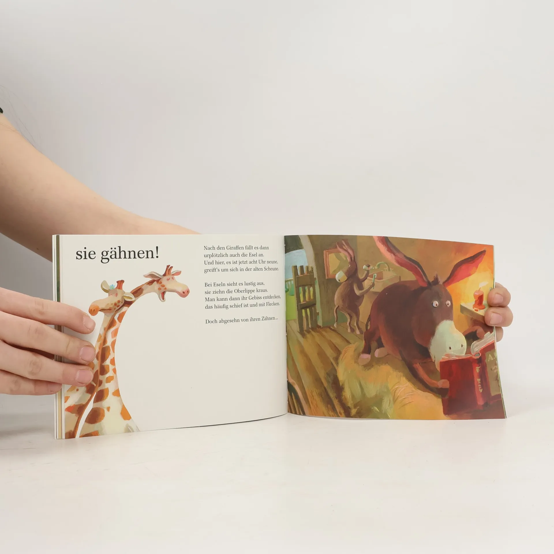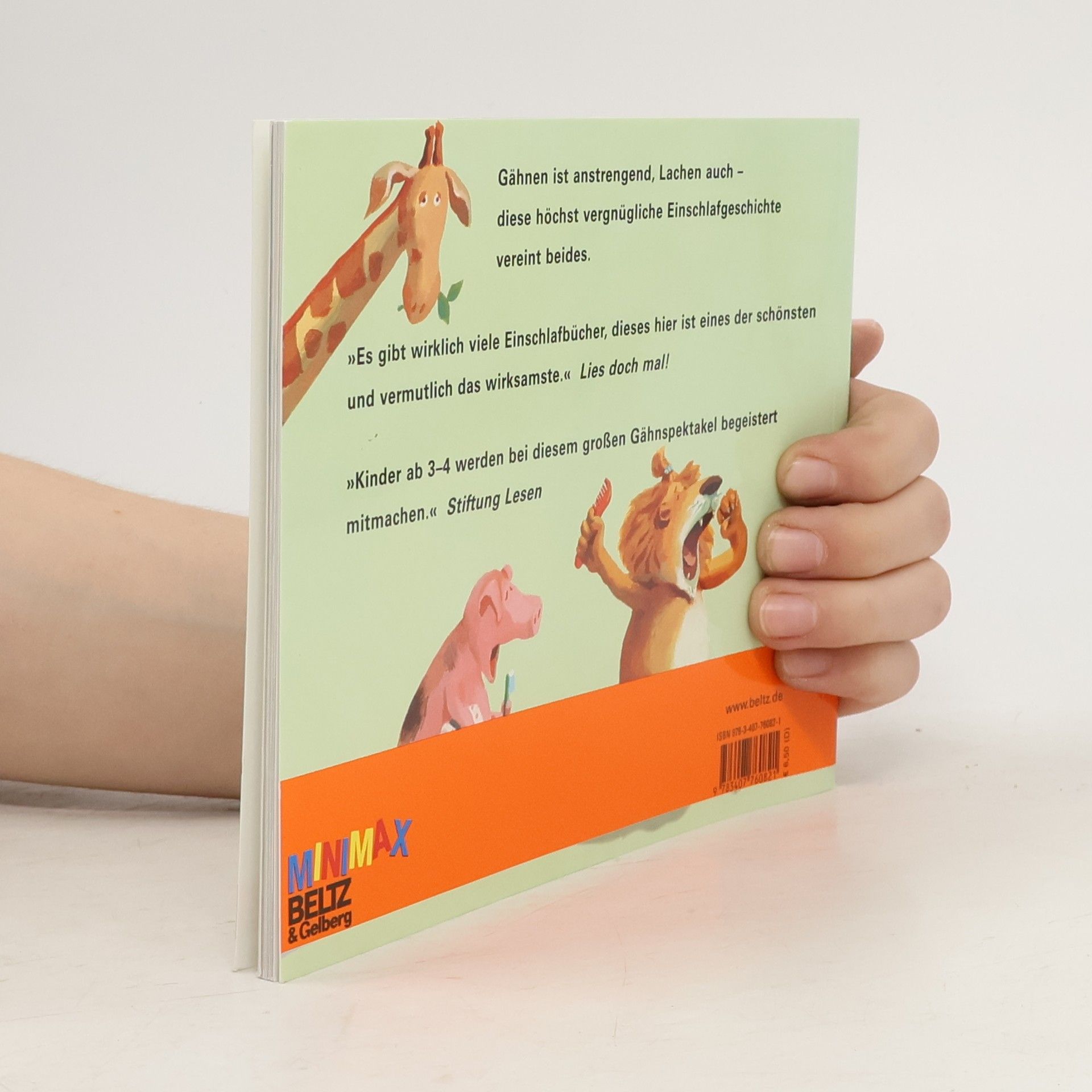 Um Punkt 8 beginnt jeden Abend im Zoo ein großes Spektakel: Es trifft den Tiger, die Schwäne und die Schweine, die Krokodile, die Löwen und Hyänen – sie alle gähnen! Ein Tier steckt das andere an. Und auf das große Gähnen folgt das zufriedene Einschlafen! »Grinsende, kichernde, prustende Reime!« Die Welt »Wer nach der Lektüre dieses Abend-Bilderbuches nicht müde ist, soll sich schämen – und erst mal gähnen! Kinder ab 3-4 Jahren werden bei diesem großen Gähnspektakel begeistert mitmachen.« Stiftung Lesen