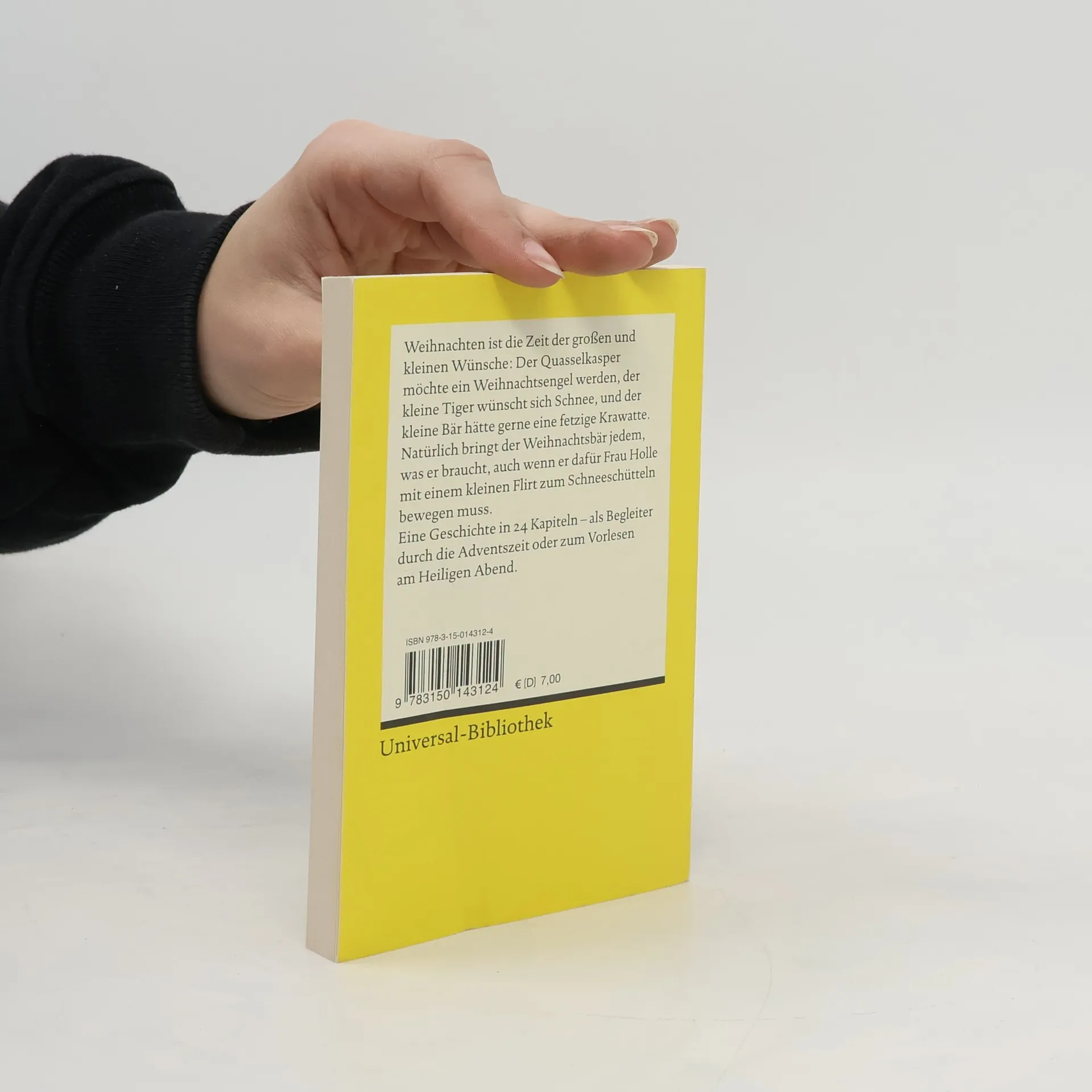Eine warmherzige Geschichte rund um große und kleine Weihnachtswünsche: Der Quasselkaspar will ein Weihnachtsengel werden, Kater Mikesch hat es mit drei Frauen und ihren Wünschen nicht leicht, und der Landstreicher Edelmann möchte das Fest in einer gemütlichen Gefängniszelle feiern. Der Weihnachtsbär bringt jedem, was er braucht, auch wenn er dafür Frau Holle mit einem kleinen Flirt zum Schneeschütteln bewegen muss. Eine Geschichte in 24 Kapiteln, über die sich Erwachsene ebenso freuen wie ihre Kinder – sei es als Begleiter durch die Adventszeit oder zum Vorlesen am Heiligen Abend. - Der Adventskalender für Janosch-Fans! - An kalten Wintertagen zum Herzerwärmen bestens zu empfehlen! - Für alle, die Weihnachten gern haben und das mit ihren Liebsten teilen wollen. - Anwendungsbeispiel: 24 Tage lang 1x täglich. Höhere Dosierung nicht zu empfehlen, sonst kommt Heilig Abend zu früh. - Für alle, die auf die Ankunft des Weihnachtsbären nicht bis Heilig Abend warten wollen.