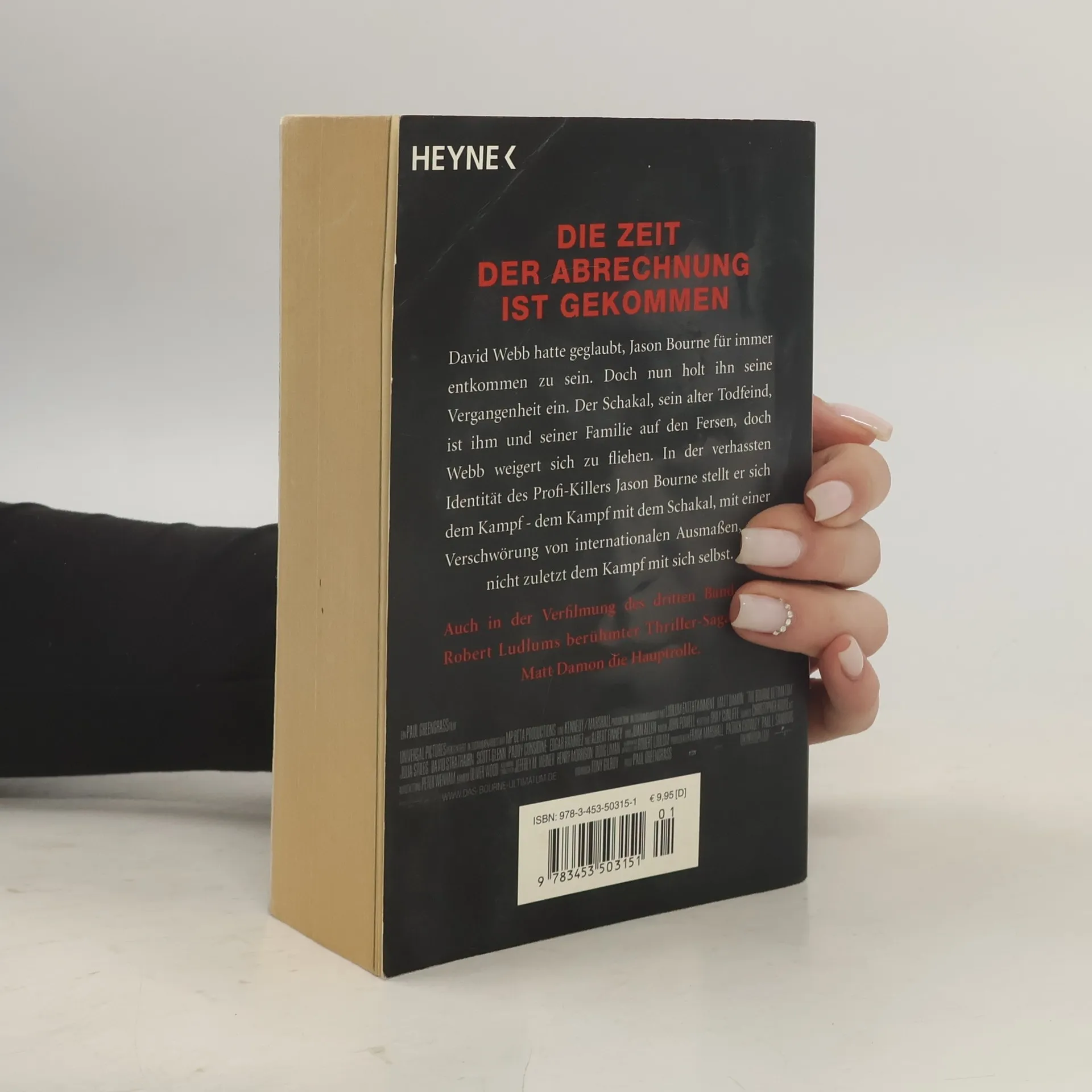 Die dritte Blockbuster-Verfilmung der legendären Bourne-Thriller Im dritten Teil der „Bourne“-Saga wird David Webb alias Jason Bourne erneut zum Spielball der Geheimdienste auf der Jagd nach seinem Erzfeind Carlos, dem Schakal. In der Blockbuster-Verfilmung von Robert Ludlums Thriller-Klassiker ist neben Matt Damon in der Rolle des Jason Bourne auch der deutsche Shootingstar Daniel Brühl zu sehen.