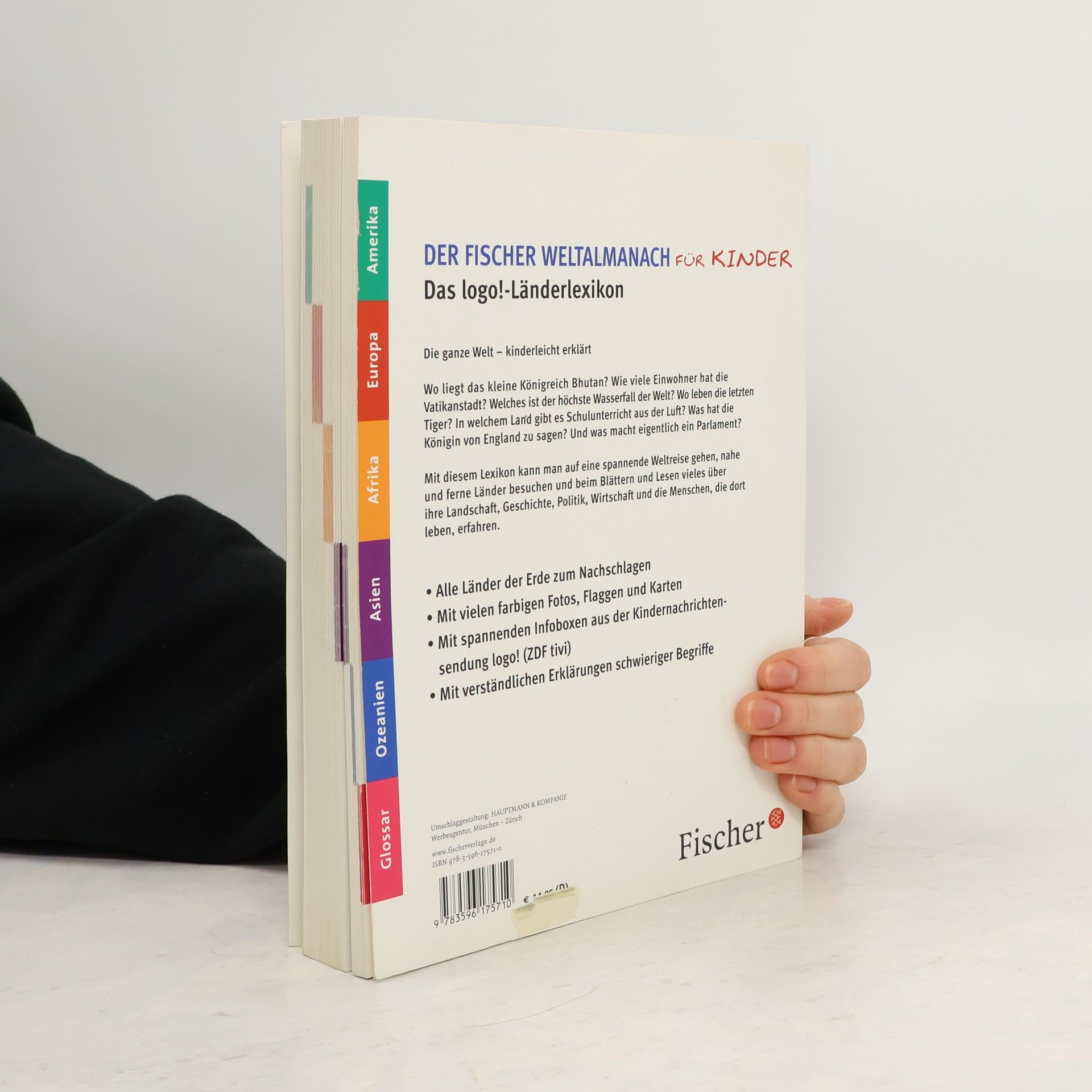 Der Fischer Weltalmanach für Kinder – Das logo!-Länderlexikon Die ganze Welt - kinderleicht erklärt Wo liegt das kleine Königreich Bhutan? Wie viele Einwohner hat die Vatikanstadt? Welches ist der höchste Wasserfall der Welt? Wo leben die letzten Tiger? In welchem Land gibt es Schulunterricht aus der Luft? Was hat die Königin von England zu sagen? Und was macht eigentlich ein Parlament? Mit diesem Lexikon kann man auf eine spannende Weltreise gehen, nahe und ferne Länder besuchen und beim Blättern und Lesen vieles über ihre Landschaft, Geschichte, Politik, Wirtschaft und die Menschen, die dort leben, erfahren. -Alle Länder der Erde zum Nachschlagen -Mit vielen farbigen Fotos, Flaggen und Karten -Mit spannenden Infoboxen aus der Kindernachrichtensendung logo! (ZDF tivi) -Mit verständlichen Erklärungen schwieriger Begriffe