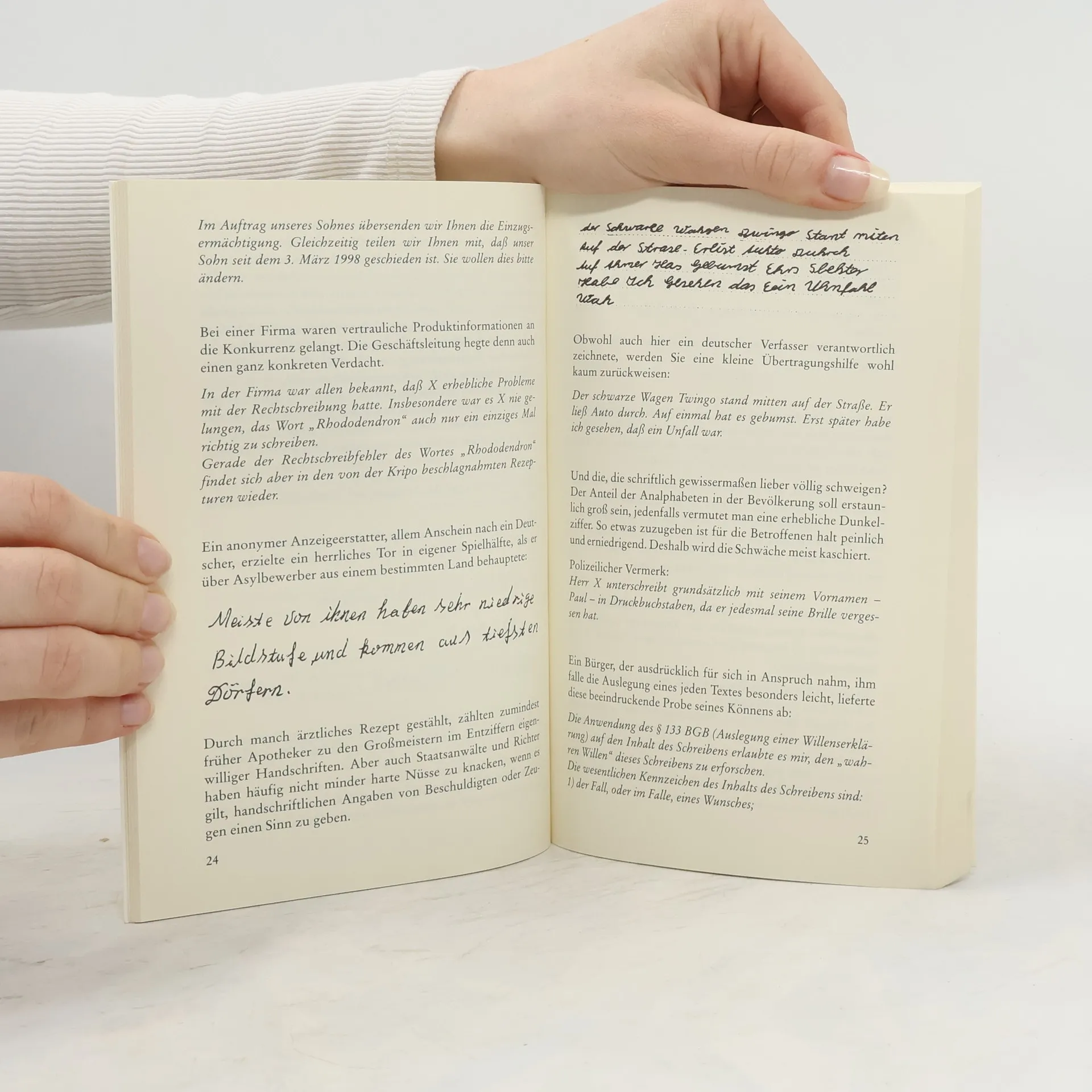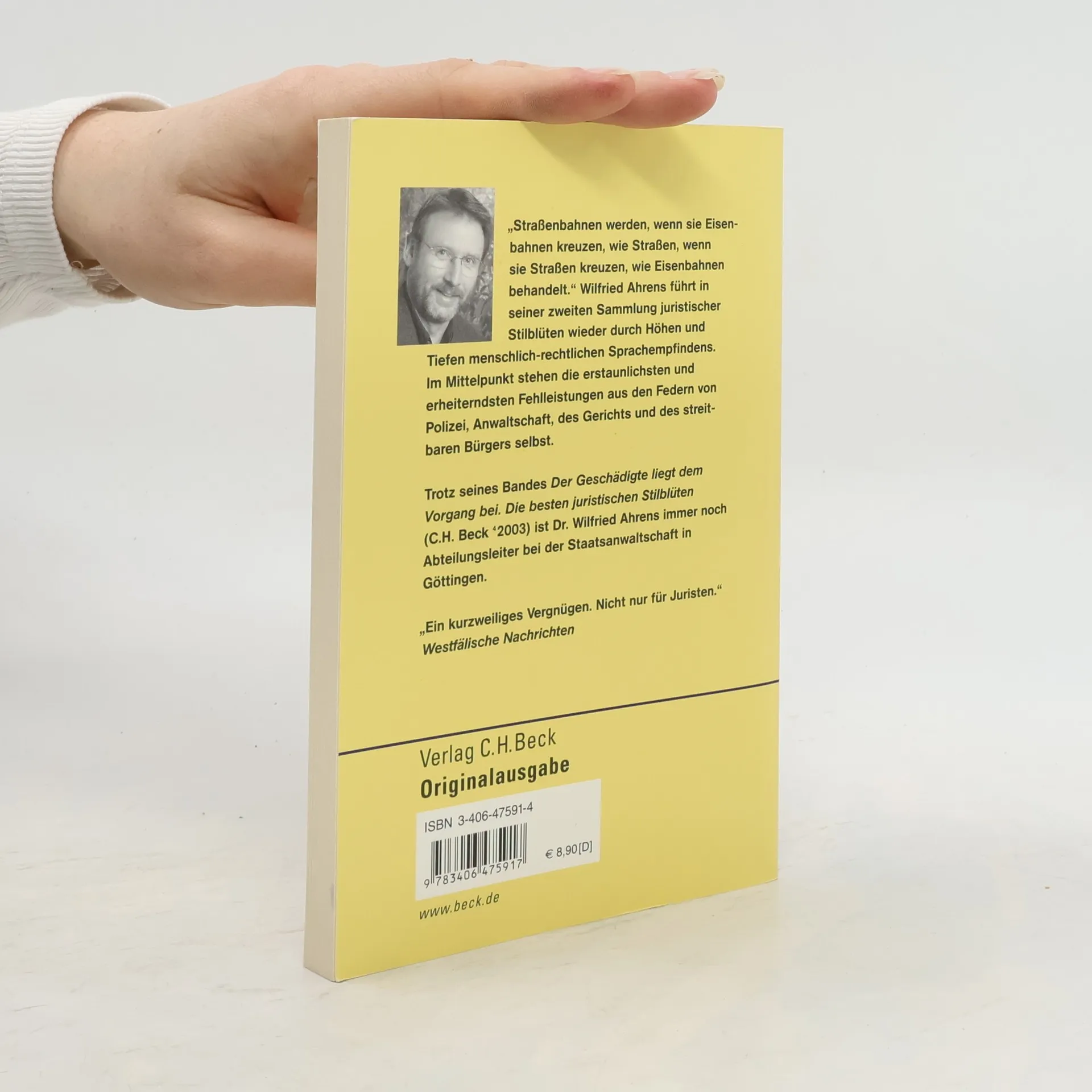 „Straßenbahnen werden, wenn sie Eisenbahnen kreuzen, wie Straßen, wenn sie Straßen kreuzen, wie Eisenbahnen behandelt.“ Wem die rechtliche Bedeutung dieser Anordnung nicht sofort einleuchtet, der hat vielleicht um so mehr Spaß an Wilfried Ahrens’ zweitem Streifzug durch die Stolperer und Ausrutscher gerichtlichen Schriftverkehrs. Ganz gleich, ob die Bittstehler Betrug und Diebstahl verwechselt, zapsarap gemacht haben oder sich an den Zivivilsenat wenden - nicht Straftat, Strafe, Rechtslage stehen hier im Mittelpunkt, sondern die erstaunlichsten und erheiterndsten Fehlschlüsse aus den Federn von Polizei, Anwaltschaft, des Gerichts und des streitbaren Bürgers selbst.