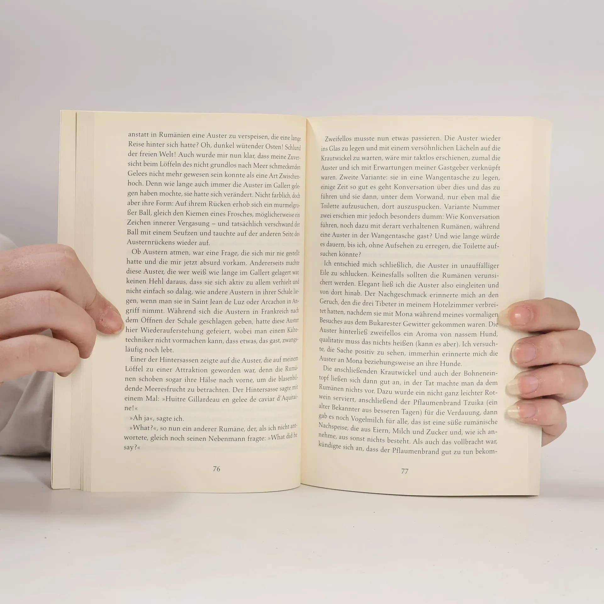 Eine Frau wie ein Attentat! Blum, Spezialist für Kühlkettensysteme, macht eine harmlos scheinende Geschäftsreise nach Bukarest und landet im Chaos. Denn dort wartet nicht nur die rumänische Schlachthofmafia, die ihn über den mit seltsamen Speisen reich gedeckten Tisch ziehen will, sondern auch die Prostituierte Mona. Blum wird zum mehrfachen Mörder aus Liebe und begibt sich mit Mona auf die Flucht nach Frankreich – der rührendste, komischste und trotteligste Verliebte der zeitgenössischen Literatur!