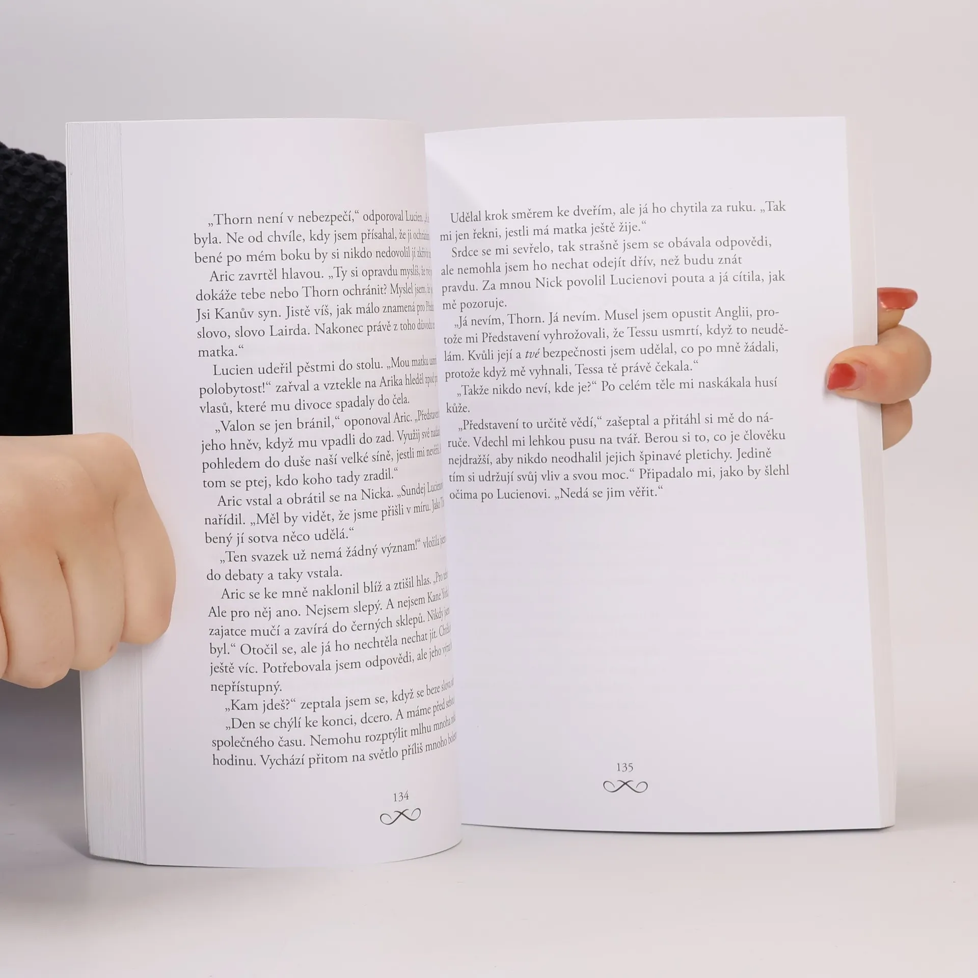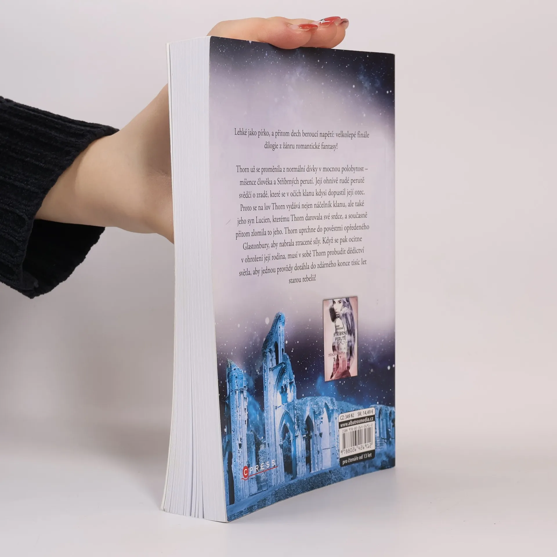 Thorn už se proměnila z normální dívky v mocnou polobytost – míšence člověka a Stříbrných perutí. Její ohnivě rudé perutě svědčí o zradě, které se v očích klanu kdysi dopustil její otec. Proto se na lov Thorn vydává nejen náčelník klanu, ale také jeho syn Lucien, kterému Thorn darovala své srdce, a současně přitom zlomila to jeho. Thorn uprchne do pověstmi opředeného Glastonbury, aby nabrala ztracené síly. Když se pak ocitne v ohrožení její rodina, musí v sobě Thorn probudit dědictví světla.