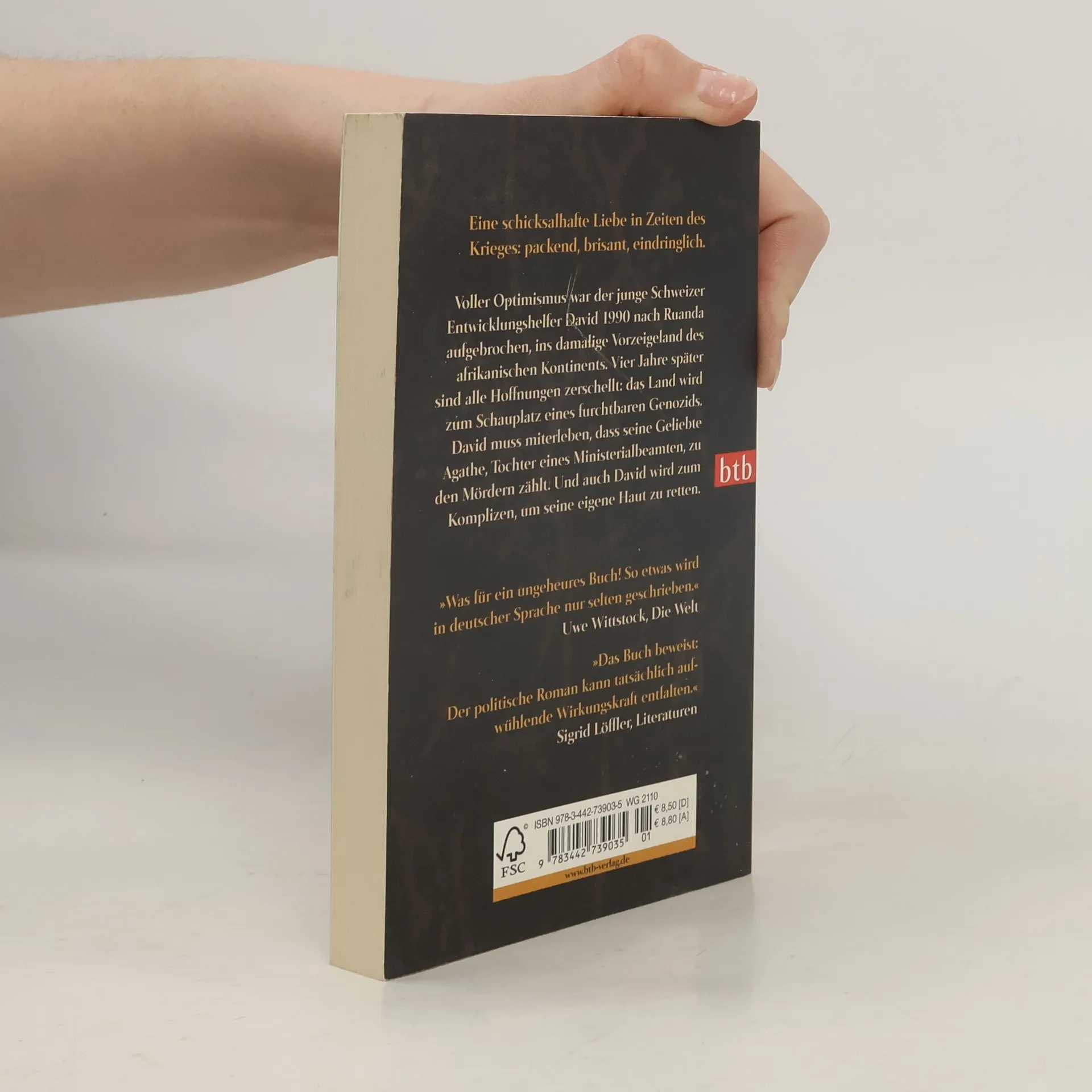 Die Geschichte eines moralischen Irrtums, der in Ruanda eines der größten Verbrechen des Jahrhunderts ermöglichte. Der Roman erzählt von zwei Menschen, die im Chaos ihrer Zeit um ihre Unschuld kämpfen. Im April 1994 wütet in Kigali der Mob. David, ein Mitarbeiter der Schweizer Entwicklungshilfe, hat das Flugzeug, das die letzten Ausländer evakuierte, abfliegen lassen. Er versteckt sich hundert Tage in seinem Haus, versorgt vom Gärtner mit Nahrung und Informationen über Agathe, die Tochter eines Ministerialbeamten und Grund für sein Verweilen. Erinnerungen an die vergangenen vier Jahre ihrer Liebe und seine Zeit als Entwicklungshelfer kommen ihm in den Sinn. Millionen wurden in ein totalitäres Regime investiert, das schließlich einen Genozid organisierte, als es die Macht zu verlieren drohte. Auch David wird zum Komplizen der Schlächter und flieht mit den Völkermördern über die Grenze, als die Aufständischen Kigali einnehmen. Im Flüchtlingslager findet er Agathe wieder, doch sie ist nicht mehr die Frau, die er einst liebte. Der Roman beleuchtet das Dilemma von Menschen, die das Gute beabsichtigen, aber das Böse bewirken. Es erzählt von einer Liebe in Zeiten des Krieges und von den verheerenden Auswirkungen des Hasses.
