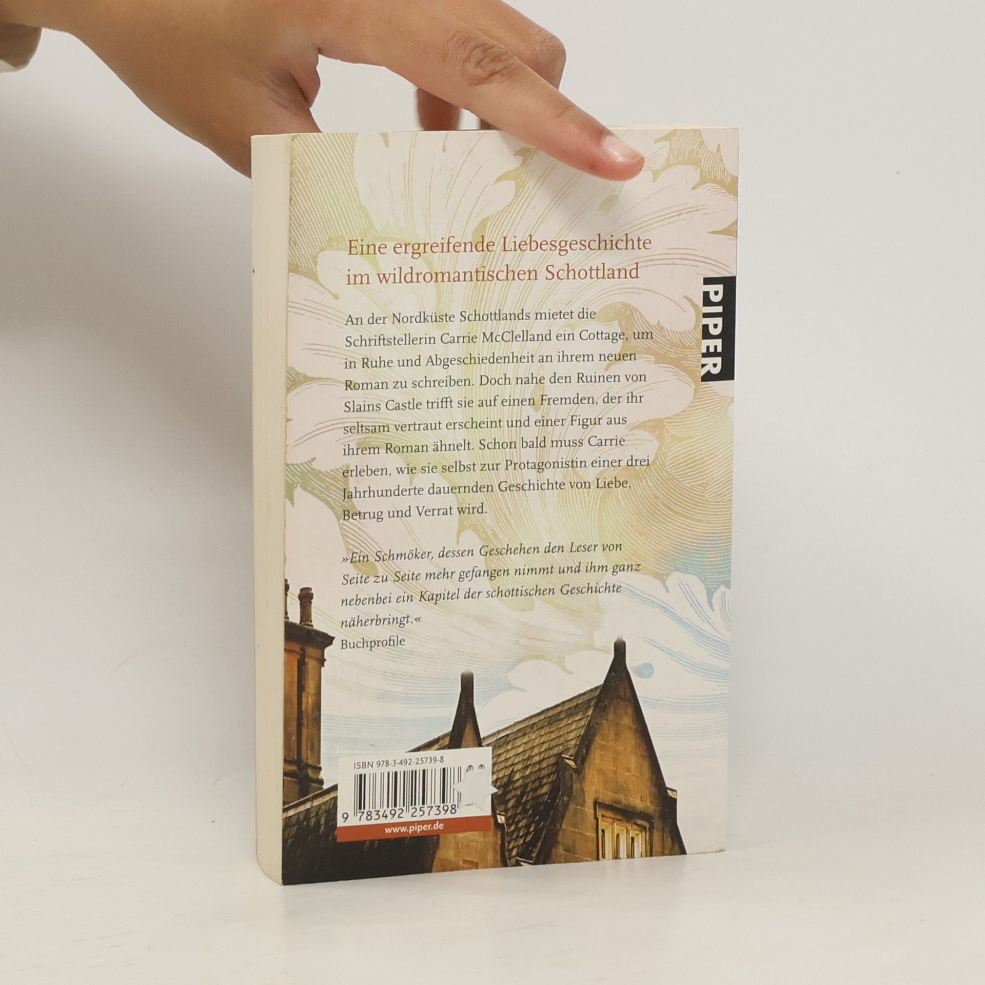 An der Nordküste Schottlands mietet die Schriftstellerin Carrie McClelland ein Cottage, um in Ruhe und Abgeschiedenheit an ihrem neuen Roman zu schreiben. Doch nahe den Ruinen von Slains Castle trifft sie auf einen Fremden, der ihr seltsam vertraut erscheint und einer Figur aus ihrem Roman ähnelt. Schon bald muss Carrie erleben, wie sie selbst zur Protagonistin einer drei Jahrhunderte dauernden Geschichte von Liebe, Betrug und Verrat wird.