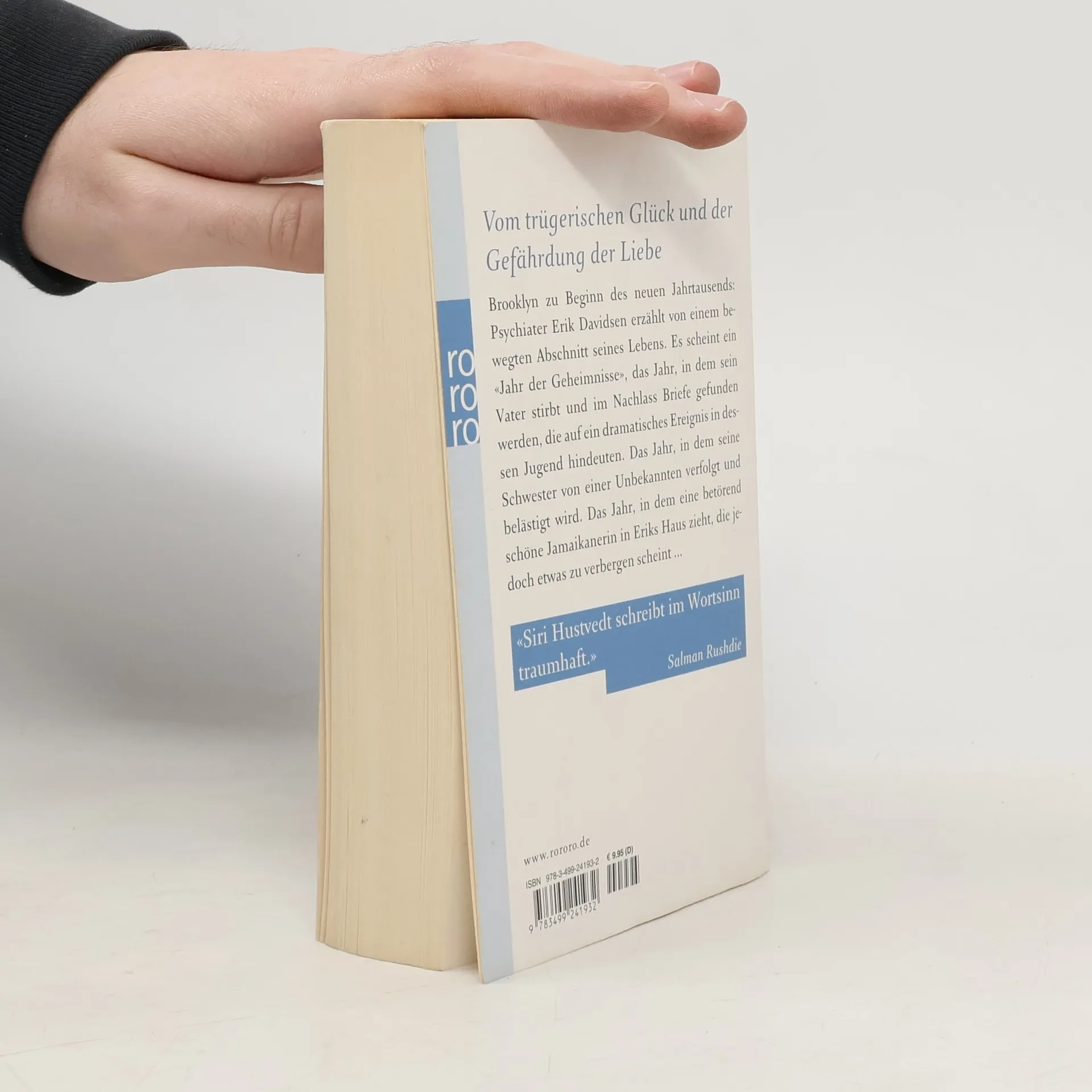 Vom trügerischen Glück und der Gefährdung der Liebe Brooklyn zu Beginn des neuen Jahrtausends: Psychiater Erik Davidsen erzählt von einem bewegten Abschnitt seines Lebens. Es scheint ein «Jahr der Geheimnisse», das Jahr, in dem sein Vater stirbt und im Nachlass Briefe gefunden werden, die auf ein dramatisches Ereignis in dessen Jugend hindeuten. Das Jahr, in dem seine Schwester von einer Unbekannten verfolgt und belästigt wird. Das Jahr, in dem eine betörend schöne Jamaikanerin in Eriks Haus zieht, die jedoch etwas zu verbergen scheint ...«Siri Hustvedt schreibt im Wortsinn traumhaft.» Salman Rushdie