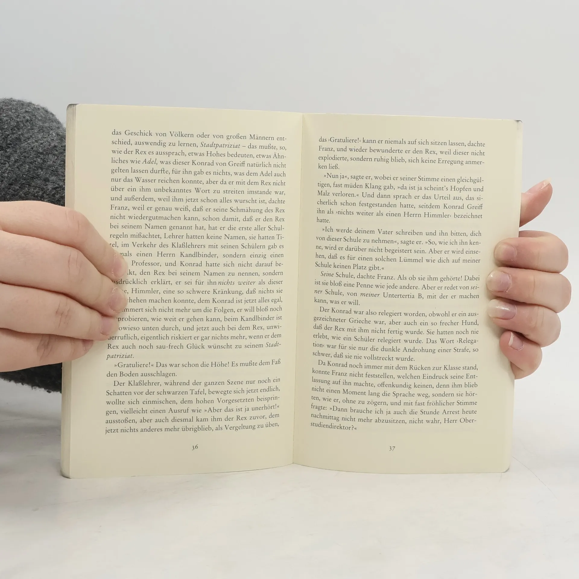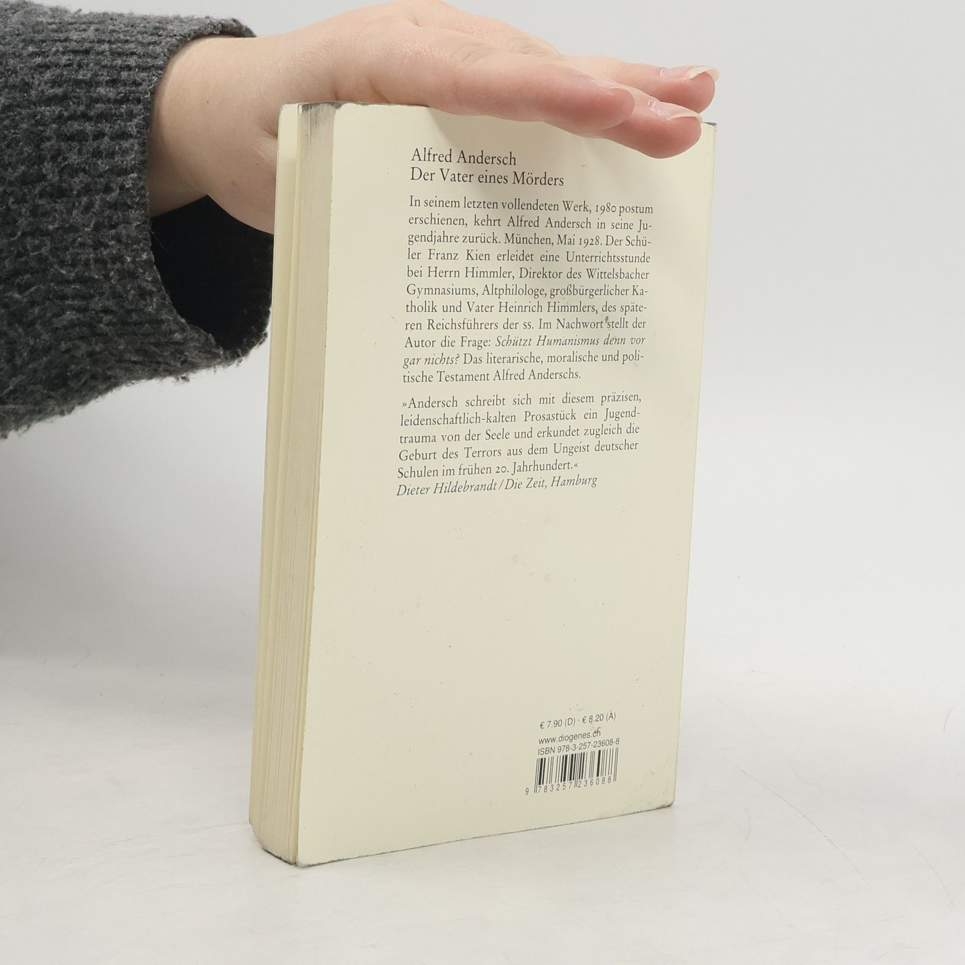 In seinem letzten vollendeten Werk, 1980 postum erschienen, kehrt Alfred Andersch in seine Jugend zurück. München, Mai 1928. Der Schüler Franz Kien erleidet eine Unterrichtsstunde bei Herrn Himmler, Direktor des Wittelsbacher Gymnasiums, Altphilologe, großbürgerlicher Katholik und Vater des späteren Reichsführers der SS. Im Nachwort stellt der Autor die Frage: »Schützt Humanismus denn vor gar nichts?« "