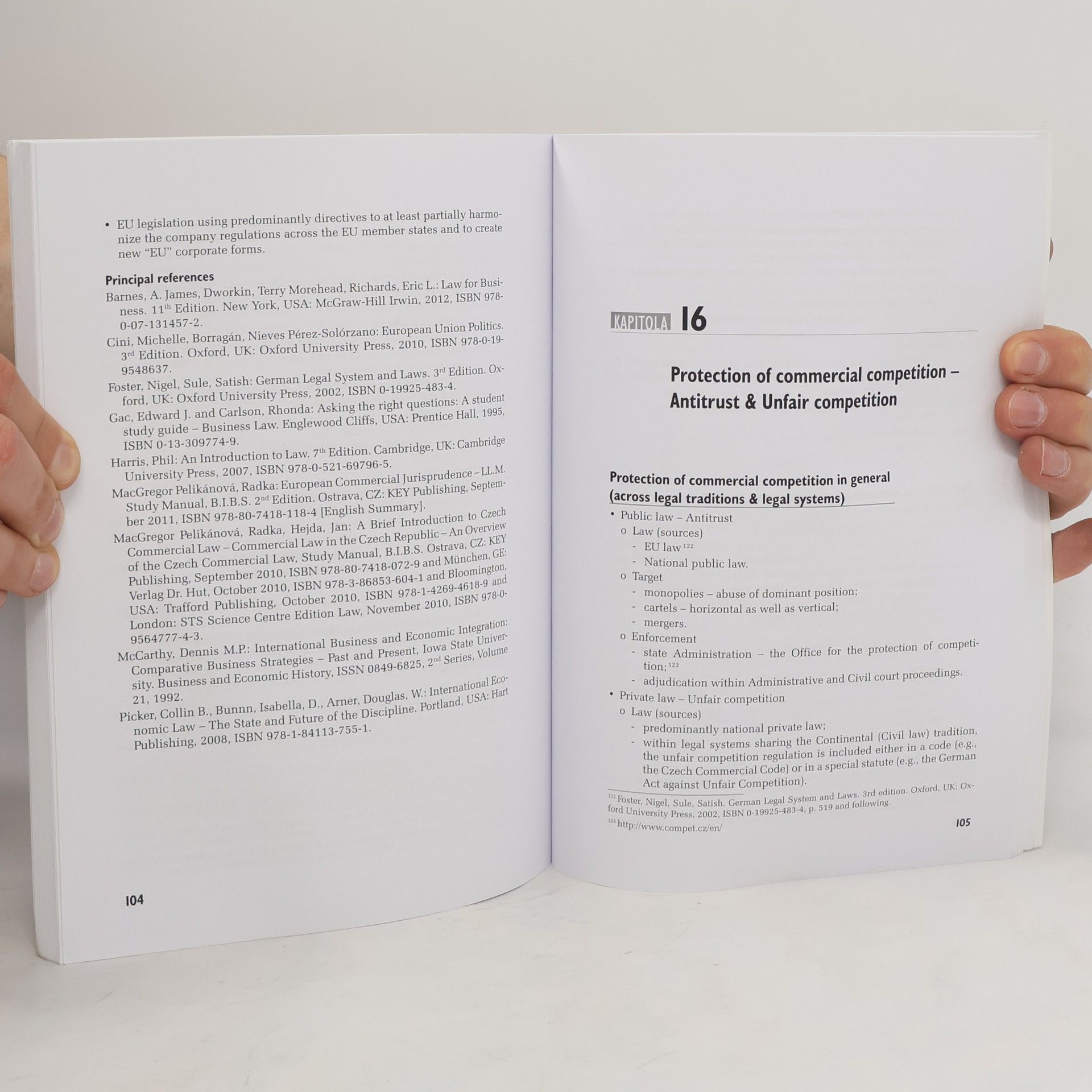 Publikace "Introduction to law for business" je stručným, jasným a praktickým úvodem do práva s důrazem na obchodní a podnikatelské aspekty v rámci západních civilizací, tj. jak ve státech s kontinentálním právem, tak i s common law. Dělba na 21 samostatných kapitol a bodová prezentace umožňují snadnou a rychlou orientaci a získání relevantních informací obratem. Nesporným pozitivem je rozsáhlý tematický záběr, tj. zahrnutí jak vnitrostátního práva, tak i práva mezinárodního a evropského (včetně judikatury), stejně jako práva hmotného i práva procesního. Dále je třeba vyzdvihnout uvedení řady praktických příkladů a doporučení (např. ohledně smluvních ustanovení).