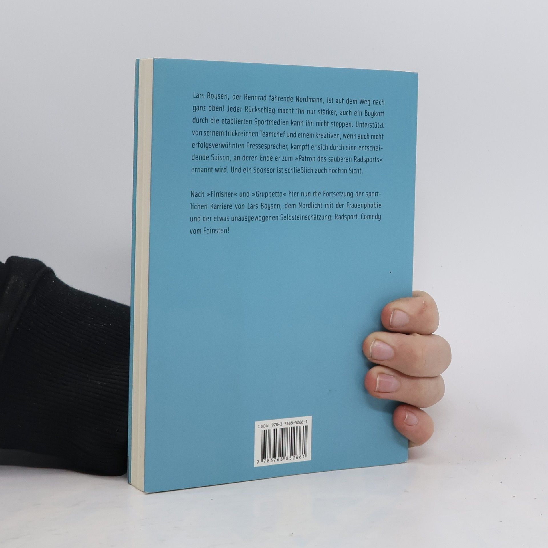 Lars Boysen, die Ikone des sauberen Radsports, der Mann mit dem eisernen Willen und den furchtbar schmerzenden Oberschenkeln, ist auf dem Weg nach ganz oben! Weder die lockende Toffi-Fee noch weltliche Weiblichkeit können ihn beirren, auch die gefürchtete Höhenkammer fesselt ihn nicht: Boysen kämpft sich mit grandiosen Siegen (und vernichtenden Einbrüchen) durch eine entscheidende Saison, an deren Ende er als „Patron“ seine Klasse dominieren wird. Nach den Erfolgen von „Finisher“ und „Gruppetto“ folgt hier die Fortsetzung der sportlichen Karriere von Lars Boysen, dem Radsportler mit der Frauenphobie und der leicht unausgewogenen Selbsteinschätzung. Hinter dem Pseudonym des tollpatschigen Ich-Erzählers Lars Boysen verbirgt sich ein Autor, der den Radsport, seine Helden und deren Schwächen nur zu genau kennt: Er ist selbst mehrfacher Landesmeister in den Disziplinen Zeit- und Bergfahren.