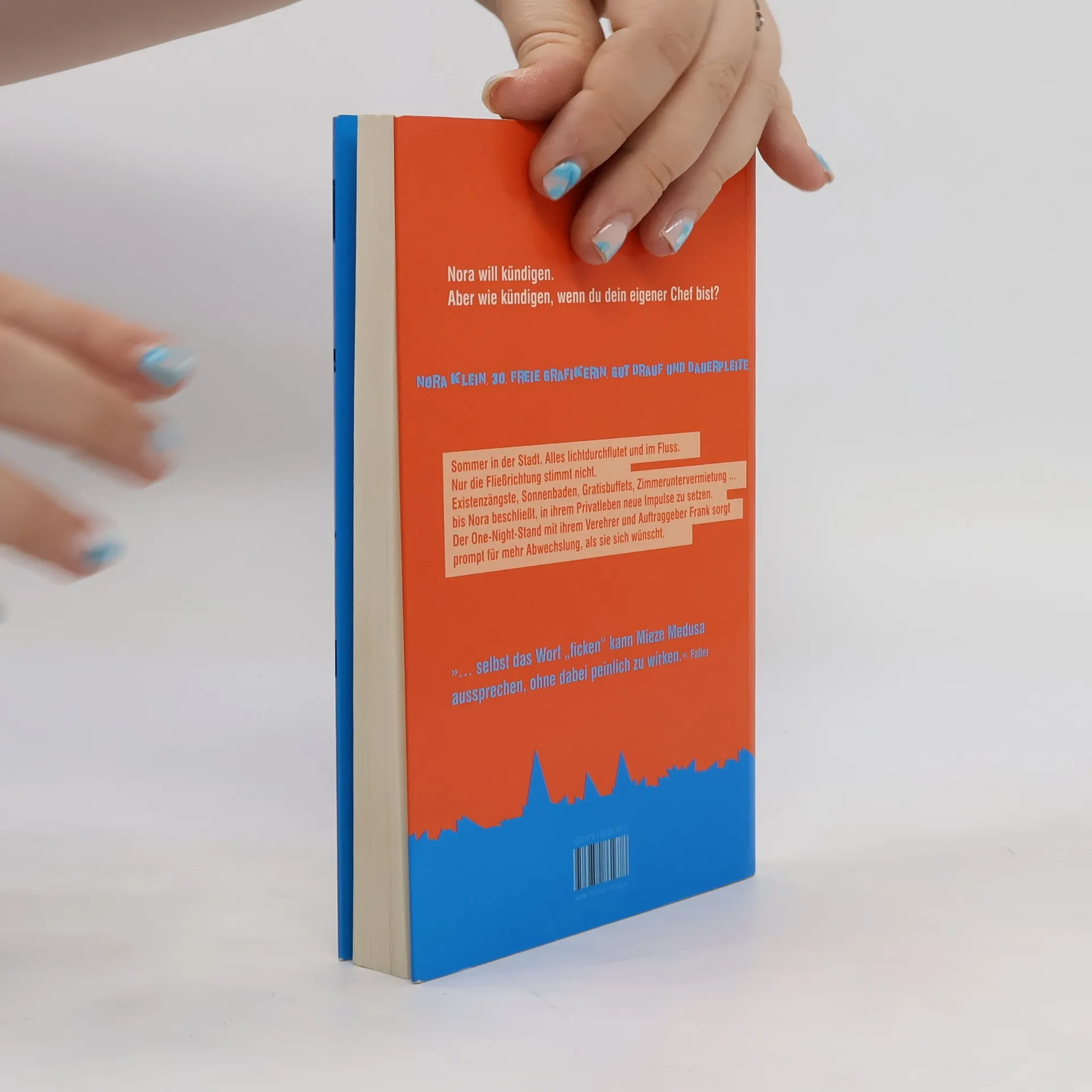 Nora will kündigen. Aber wie kündigen, wenn du dein eigener Chef bist? Ein Roman voll flirrender Eloquenz und spritzigem Humor für alle, die noch nicht so ganz erwachsen sind, es lange Zeit nicht waren oder niemals werden wollen! Der Debütroman von Wiens Poetryslam-Queen und HipHop-Lyrikerin Mieze Medusa, der garantiert Ihren Alltag versüßt. Sommer in der Stadt. Alles lichtdurchflutet und im Fluss. Nur die Fließrichtung stimmt nicht. Da das Schwimmen gegen den Strom nicht klappt, übt sich Nora Klein im Kopf über dem Wasser halten. Dieses ist leider im Steigen begriffen: Rechnungen und Steuerzahlungsnachforderungen trudeln ein, Aufträge für die junge, selbständige Grafikerin sind aber Mangelware. Raubzüge öffentlicher Büffets und Plündern von Werbeständen mit gratis Joghurtdrinks garantieren das Leben im Alltag trotz Dauerflaute im Portemonnaie. Die Existenzangst wird mit Sonnenbaden, zurückgeschraubten Ansprüchen und Zimmeruntervermietung bekämpft, bis Nora beschließt, dass auch ihr Privatleben neue Impulse benötigt. Der One-Night-Stand mit ihrem Verehrer und Auftraggeber Frank sorgt prompt für mehr Abwechslung als sie sich wünscht. Mit viel Witz und sprühendem Charme lässt Wiens Poetryslam-Queen und HipHop-Lyrikerin Mieze Medusa Noras ständig quengelndes, scharfzüngiges Karma das Leben der heutzutage so häufigen „ewigen Adoleszenz“ kommentieren.