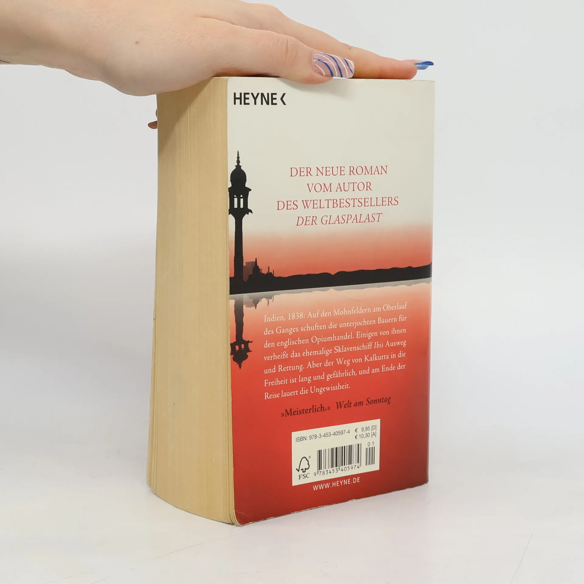Wie ein großer Vogel gleitet das stolze Segelschiff den Ganges hinauf. Diti, die auf den Feldern am Flussufer für Englands Opiumhandel schuftet, kann sich die Vision nicht erklären. Hat das Schicksal ihr ein Zeichen gesandt? Sie flieht nach Kalkutta, wo die »Ibis«, ein ehemaliges Sklavenschiff, bereits auf sie zu warten scheint. Mit den anderen Passagieren hat die junge Frau nur eines gemeinsam: Sie alle müssen Indien und ihr bisheriges Leben für immer hinter sich lassen. Historienepos, Gesellschafts- und Abenteuerroman zugleich.