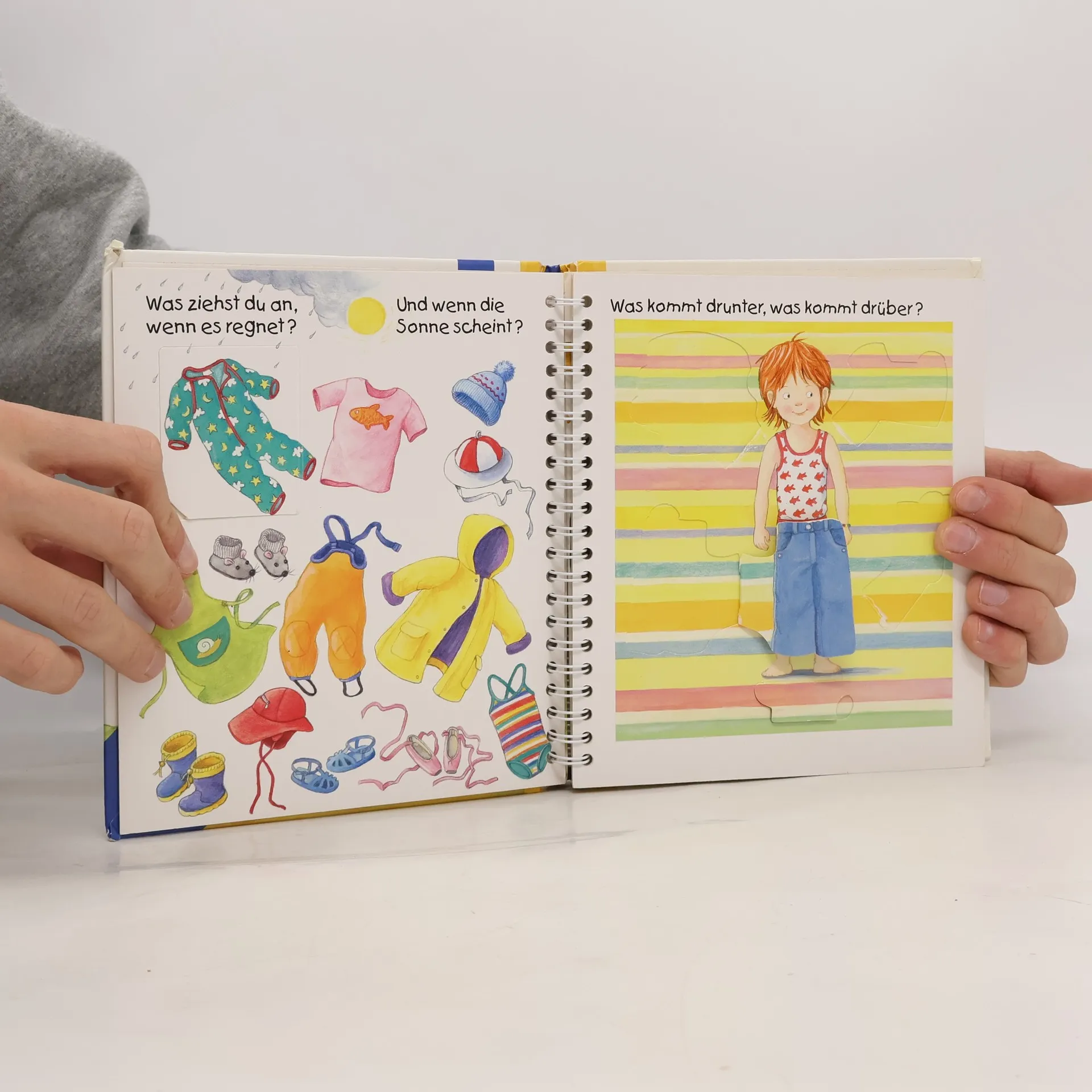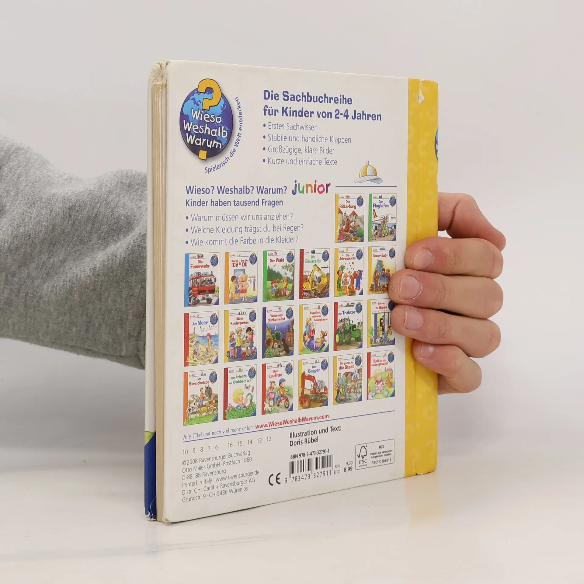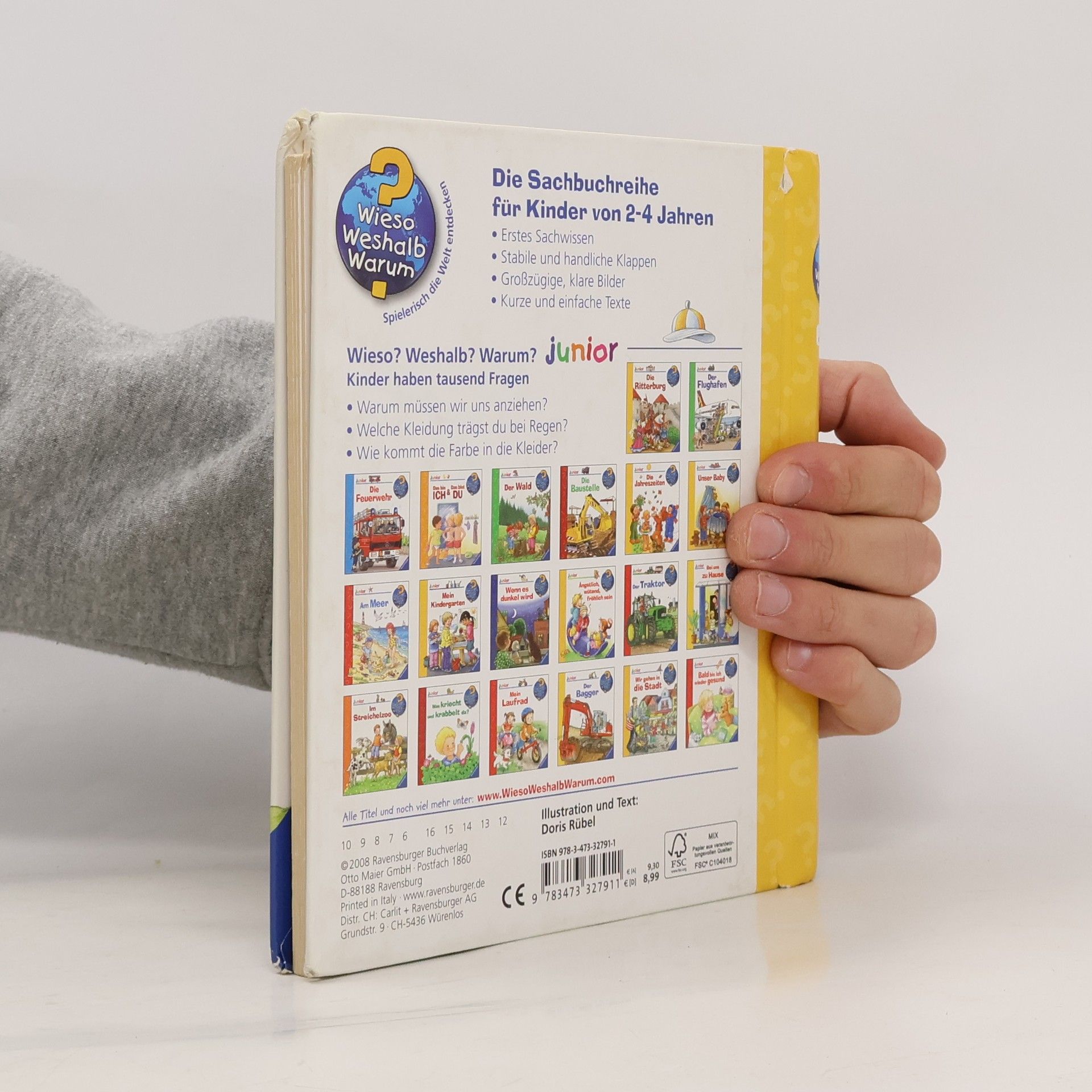 Sich allein anzuziehen ist gar nicht so einfach: zuerst die Hose und dann die Unterhose oder andersrum? Welche Kleider brauchen wir bei Regen, Sonne oder Schnee? Woraus werden Kleidungsstücke gemacht? Solche und viele weitere Kinderfragen über das Anziehen und Kleidung beantwortet dieses Buch. Mit Klappen flicken Kinder ein Loch, sie schauen in die Waschmaschine und entdecken Berufskleidung für verschiedene Einsätze.Wieso? Weshalb? Warum? junior Die Sachbuchreihe für Kinder von 2–4 Jahren Jeden Tag entdecken Kinder etwas Neues – und haben viele Fragen. Wann kommt die Feuerwehr? Was machen die Tiere im Winter? Warum muss ich Zähne putzen? Die beliebte Sachbuchreihe Wieso? Weshalb? Warum? junior beantwortet die Fragen der Kinder auf Augenhöhe. Sie beleuchtet unterschiedlichste Themen aus ihrer Alltags- und Interessenswelt altersgerecht und mit viel Liebe zum Detail. Die Reihe ist speziell auf kleine Hände und die Bedürfnisse der Kleinsten angepasst. Klare und liebevolle Bilder, kurze Sachtexte sowie handliche Klappen, die Bewegungen veranschaulichen und überraschende und lustige Einblicke gewähren, ermöglichen Kindern, sich ihre Themen selbst zu erschließen. Der Spaß am eigenhändigen Entdecken, die liebevolle Umsetzung und die hochwertige Ausstattung garantieren langanhaltende Freude an jedem Buch.