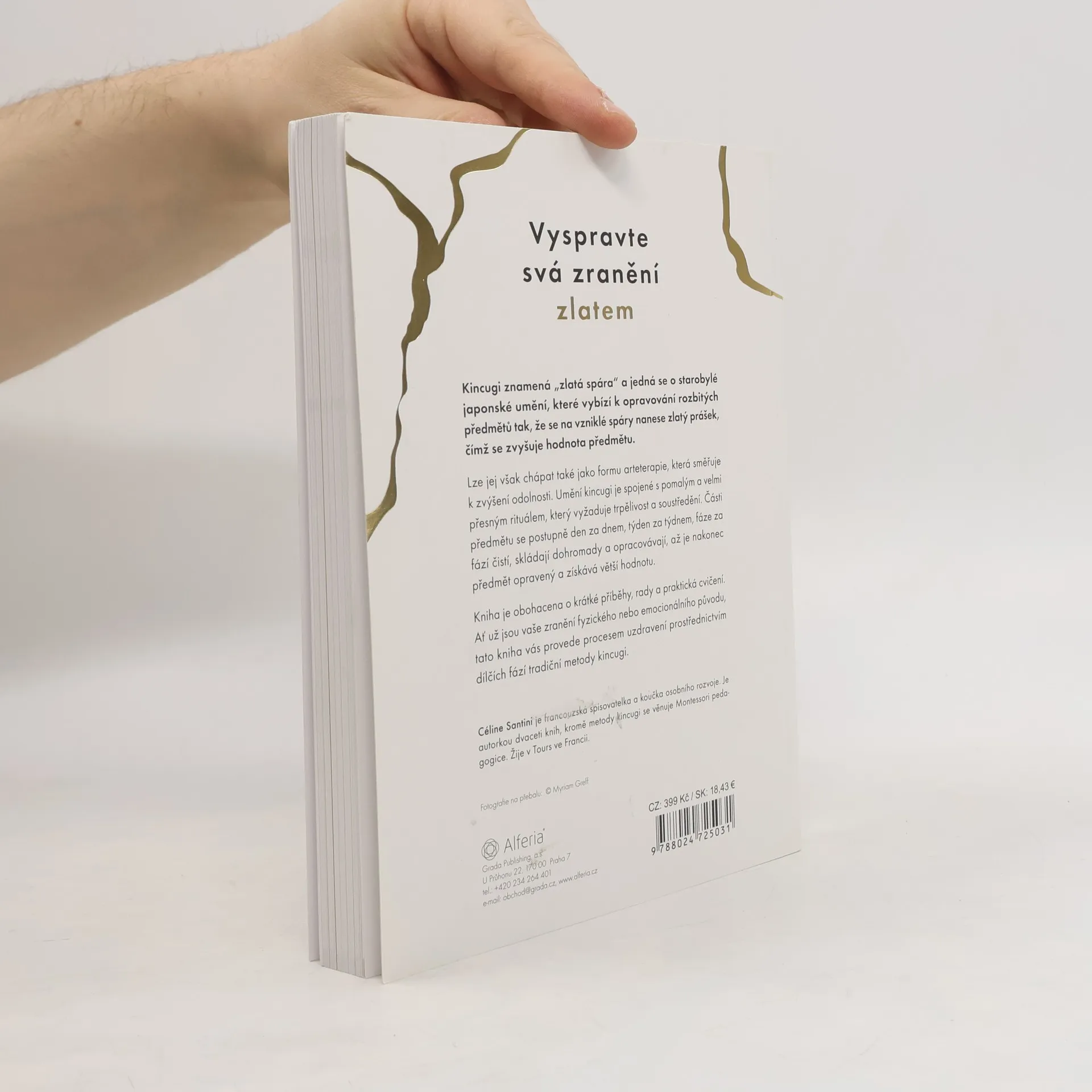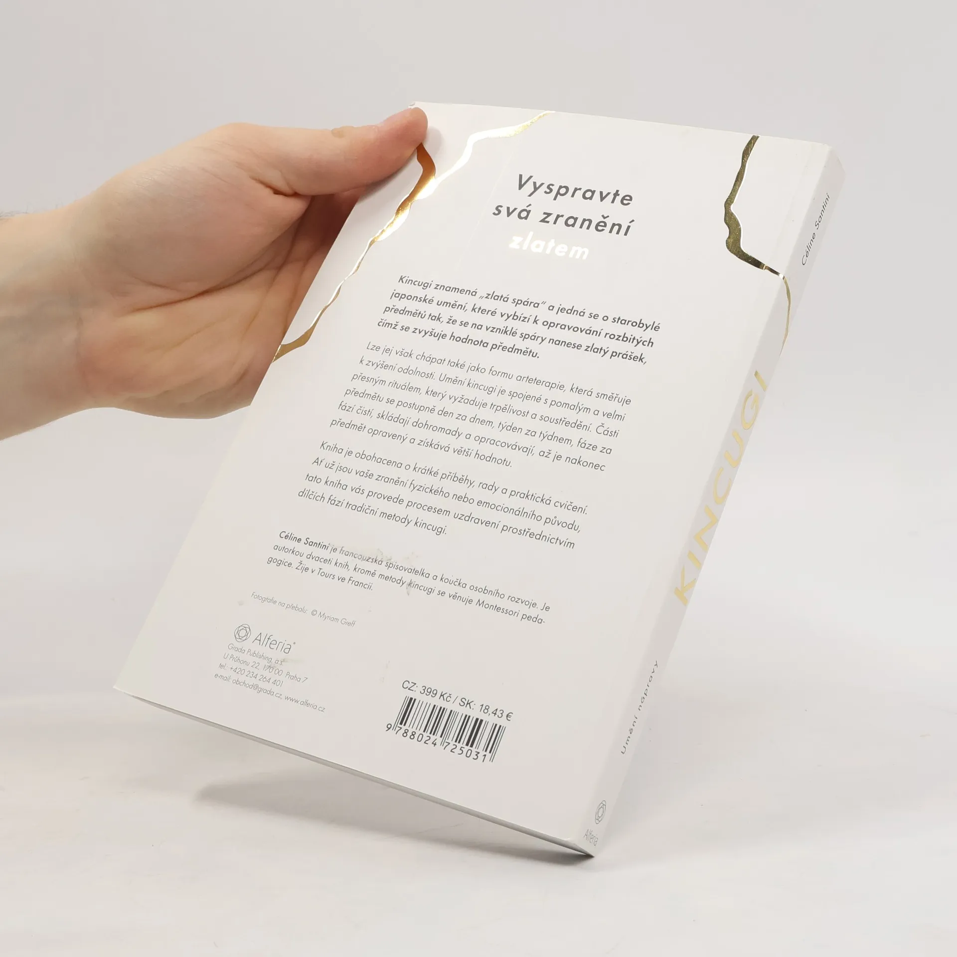 Naučte se přijmout i stinné stránky života, uzdravit nejhlubší zranění a stát se odolnějšími díky této svépomocné knize inspirované starým japonským uměním kincugi. Kincugi je japonský způsob opravy rozbitého porcelánu pomocí práškového zlata. Den po dni, týden po týdnu, krok po kroku se objekt očišťuje, opečovává, opravuje a nakonec obohatí o zlato. Nejde jen o metodu opravy porcelánu, ale stále více rozšířenou terapeutickou metodu využívanou metaforicky i při léčení lidí. „Legenda praví, že šógun Jošimasa Ašikaga (1435–1490) používal během čajového obřadu vždy svou oblíbenou misku (chawan). Jednoho dne se však rozbila. Poslal ji proto do Číny, odkud pocházela, aby ji tam opravili. Z výsledku byl ovšem velmi zklamaný. Po mnoha měsících se mu vrátila miska opravená pomocí ošklivých kovových háčků, které ji nejen hyzdily, ale zároveň nebyly nepropustné. Pověřil proto své japonské umělce, aby našli jiné, efektivnější, a především estetičtější řešení. A tak se zrodilo umění kincugi.“