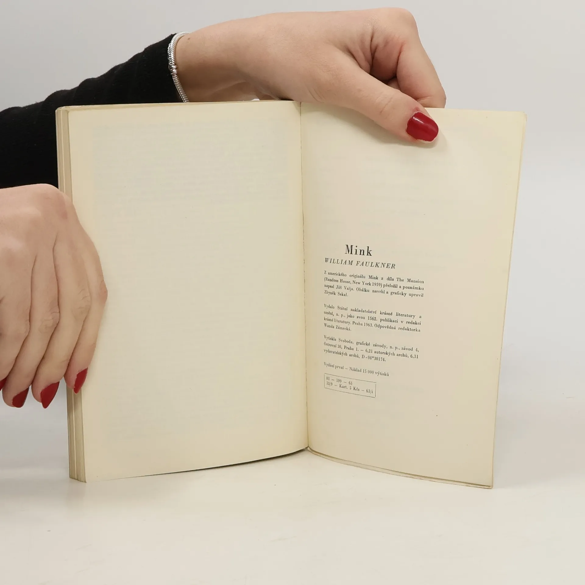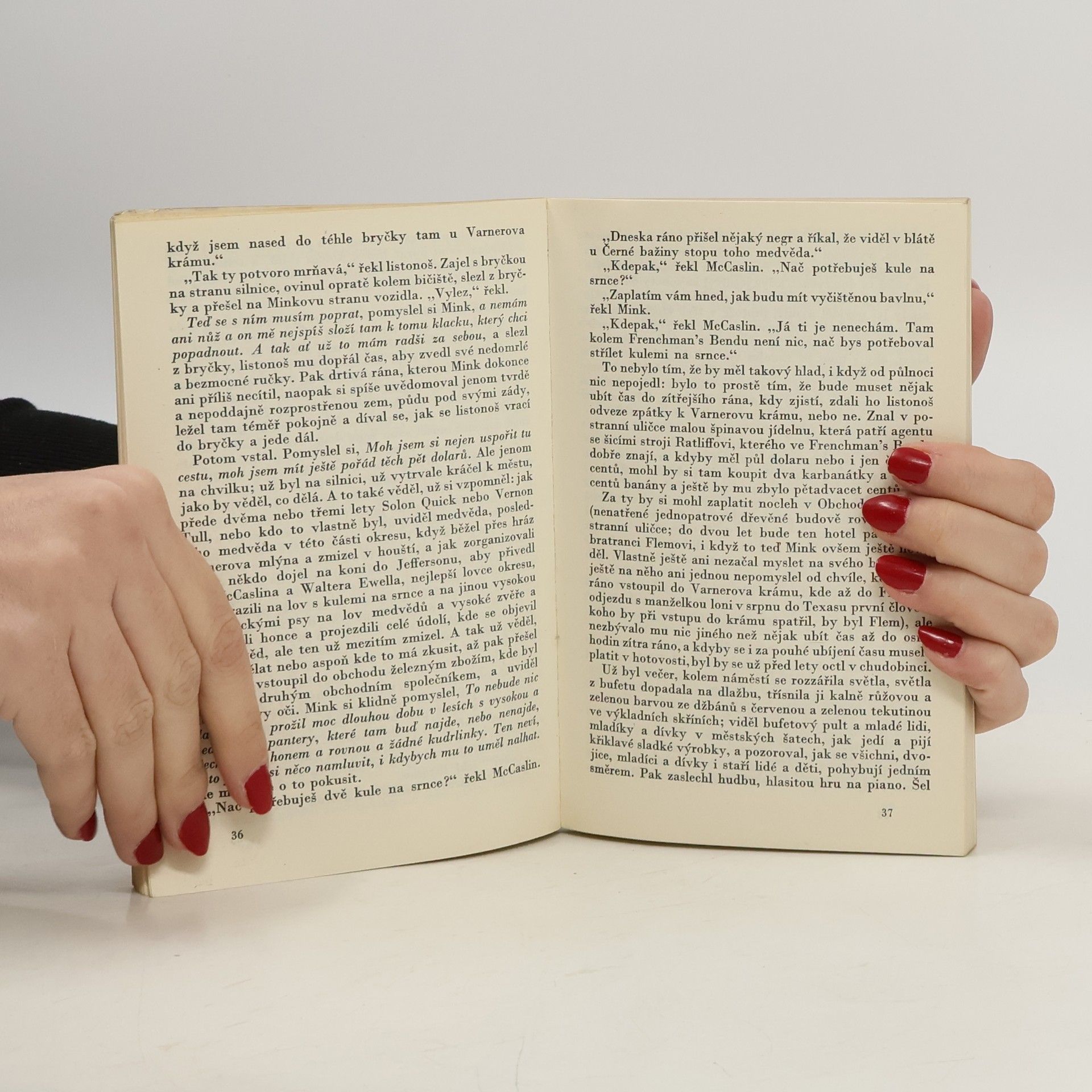 Dějově i ideově samostatný celek tvořící úsek z autorova rozsáhlého románu Panské sídlo. Je to tragický, místy groteskním humorem prosvětlený případ chudáka, který zavraždil boháče, a když po osmatřiceti letech vyjde z vězení je veden jedinou touhou: zavraždit bratrance, který mu mohl pomoci, ale nepomohl a udělal zatím skvělou kariéru, a sám tak aspoň trochu korigovat nespravedlnost společenského řádu. Novela patří k vrcholům Faulknerova umění. Obálka: Zbyněk Sekal 15000 výt.