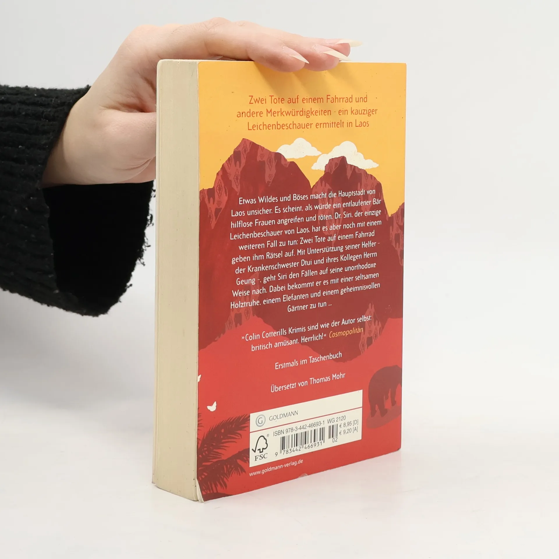 Mysteriöse Todesfälle im exotischen Laos führen Dr. Siri diesmal in die alte Königsstadt Luang Prabang Etwas Wildes und Böses macht die Hauptstadt von Laos unsicher. Es scheint, als würde ein entlaufener Bär hilf lose Frauen angreifen und töten. Dr. Siri, der einzige Leichenbeschauer von Laos, hat es aber noch mit einem weiteren Fall zu tun: Auch zwei Tote auf einem Fahrrad geben ihm Rätsel auf. Mit Unterstützung seiner Helfer, der Krankenschwester Dtui und ihres Kollegen Herrn Geung, geht Siri den Todesfällen auf gewohnt unorthodoxe Weise nach. Dabei bekommt er es mit einer seltsamen Holztruhe, einem toten Elefanten und einem geheimnisvollen Gärtner zu tun …Gewitzt, weise, eigenwillig. Dr. Siri ist ein ganz neuer Charakter im Krimi-Genre.